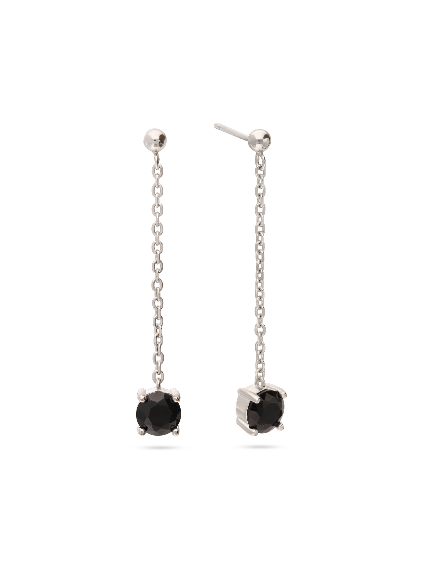 Pendentes, Prata de lei 925, Zircónia de cultivo, Preto, Círculo, Feito à mão,, Prateado, comprimento do brinco: 3.6 cm, largura do brinco: 0.6 cm, 2.21 gramas.