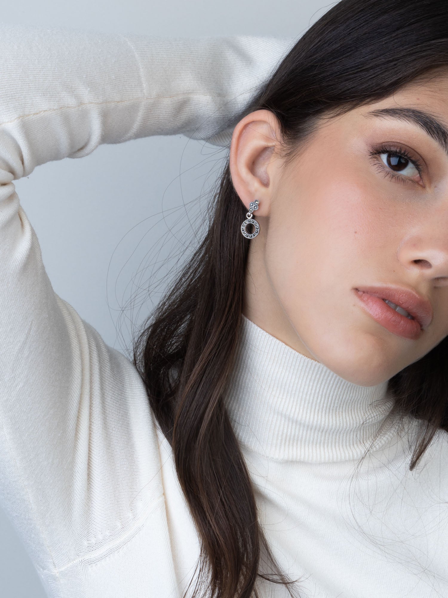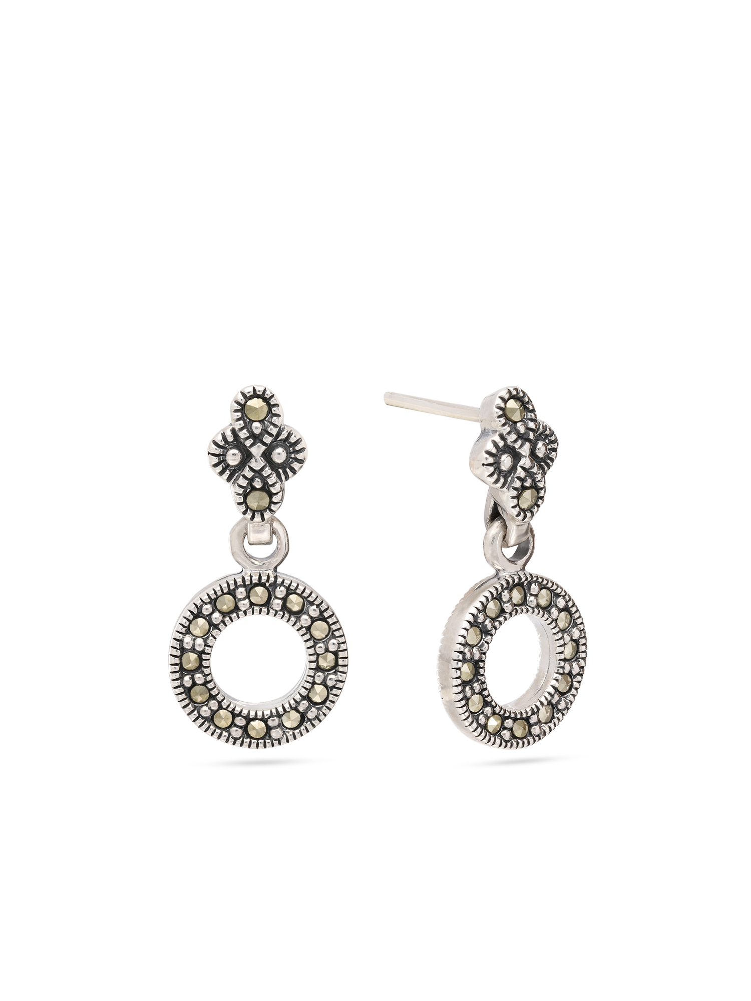 Pendentes, Prata de lei 925, Marcassita de cultivo, Cinzento, Círculo, Feito à mão,, Prateado, comprimento do brinco: 2.2 cm, largura do brinco: 1.1 cm, 4.00 gramas.