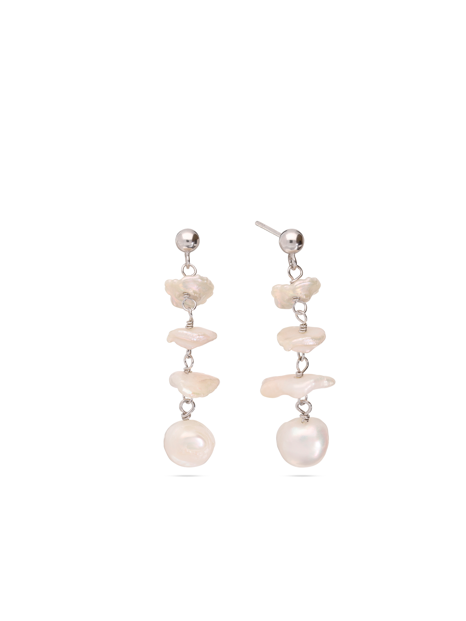 Pendentes, Prata de lei 925, Pérola cultivada, Branco, Variedade de formas,, Prateado, comprimento do brinco: 4.5 cm, largura do brinco: 1.0 cm, 4.74 gramas.