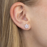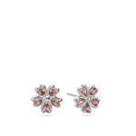 Brincos de placa, Prata de lei 925, Zircónia de cultivo, Rosa, Flor, Feito à mão,, Prateado, largura do brinco: 1.0 cm, comprimento do brinco: 1.0 cm, 1.39 gramas.