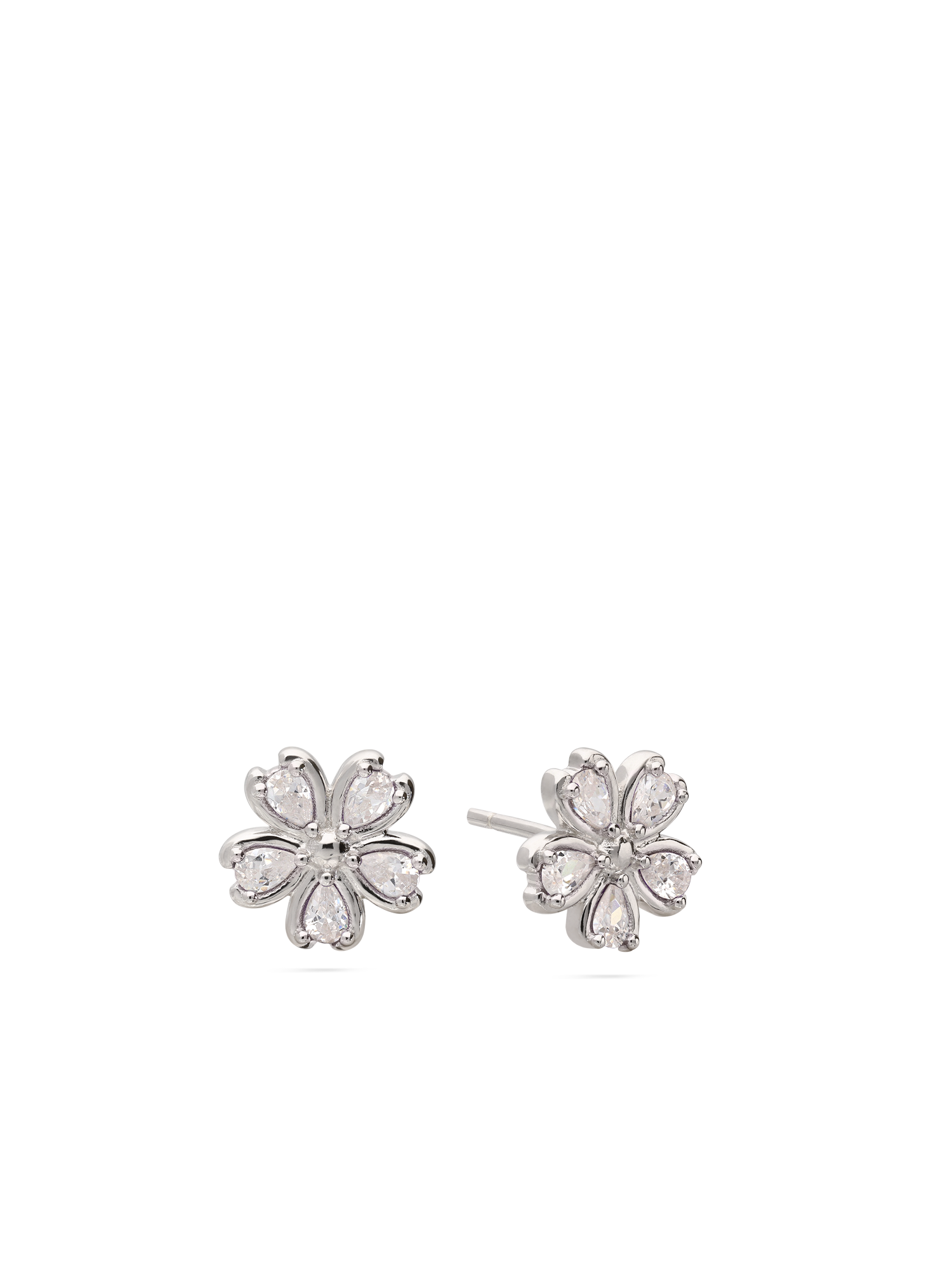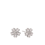 Brincos de placa, Prata de lei 925, Zircónia de cultivo, Claro, Flor, Feito à mão,, Prateado, largura do brinco: 0.9 cm, comprimento do brinco: 0.9 cm, 1.39 gramas.