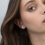 Brincos de placa flor em prata 925 com zircónias