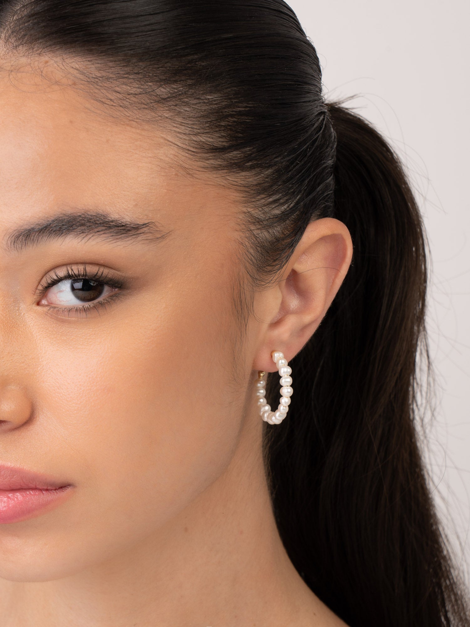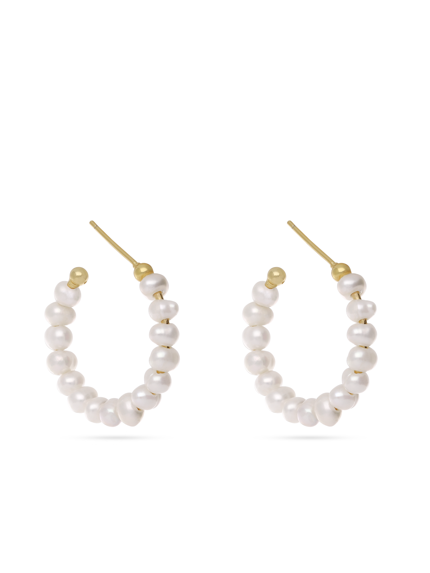 Argolas, Banhado a Ouro, Pérola cultivada, Branco, Círculo,, Dourado, comprimento do brinco: 2.8 cm, largura do brinco: 0.4 cm, 4.72 gramas.