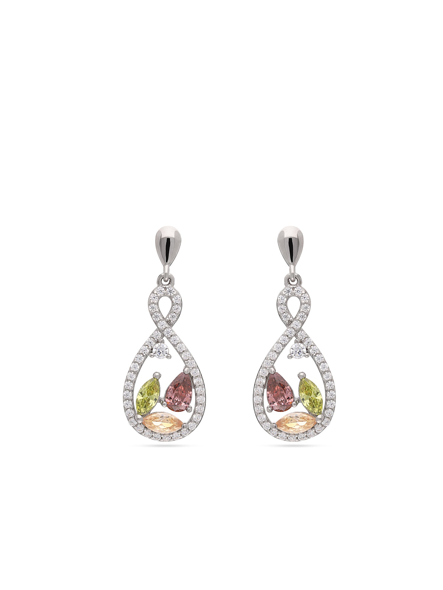 Pendentes, Prata de lei 925, Zircónia de cultivo, Colorido, Lágrima, Feito à mão,, Prateado, comprimento do brinco: 2.0 cm, largura do brinco: 1.0 cm, 2.90 gramas.
