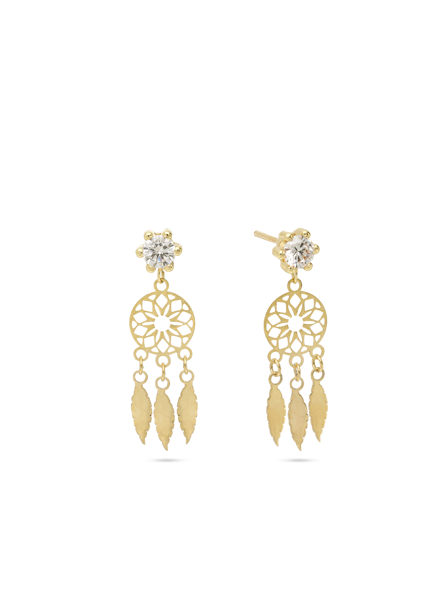 Pendentes Dreamcatcher em ouro de 9K com zircónias