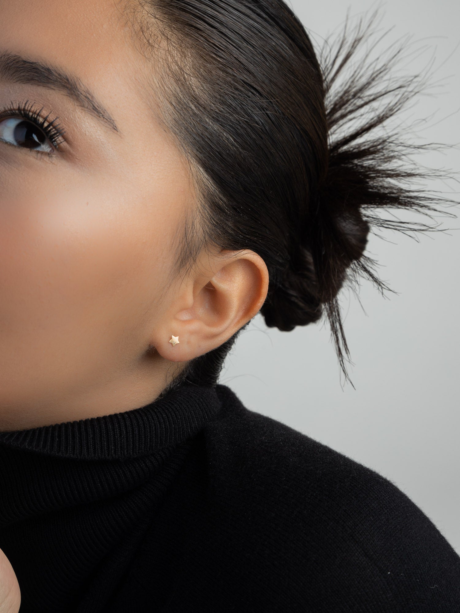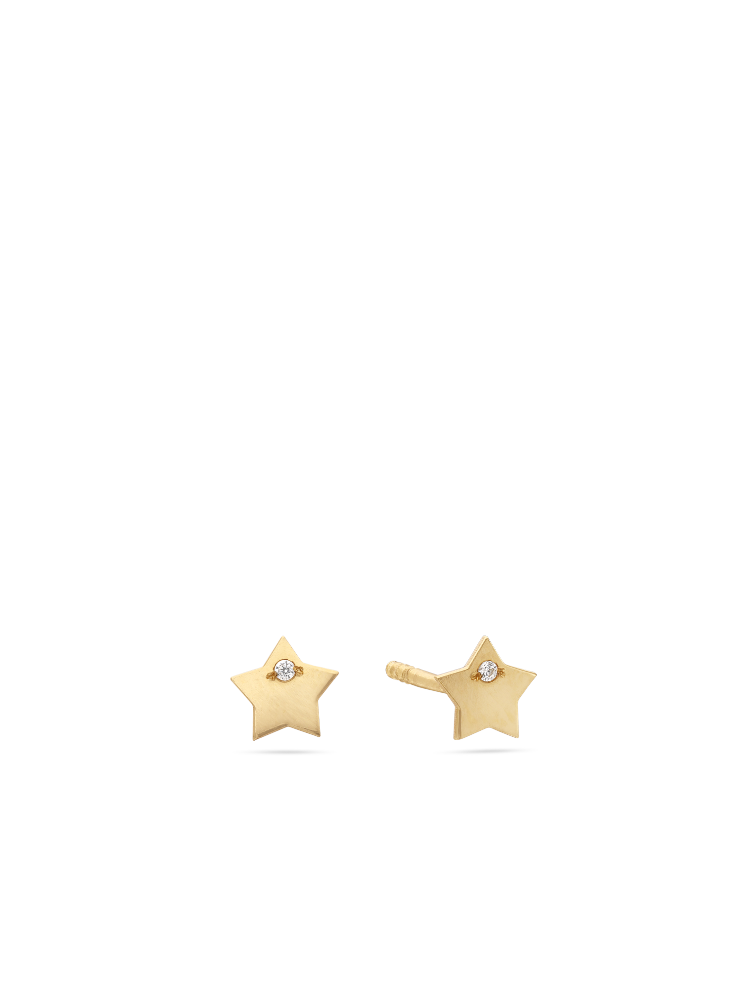 Brincos de placa, Ouro de 9 quilates, Zircónia de cultivo, Claro, Estrela, Feito à mão,, Ouro amarelo de 9K, comprimento do brinco: 0.4 cm, largura do brinco: 0.4 cm, 0.31 gramas.