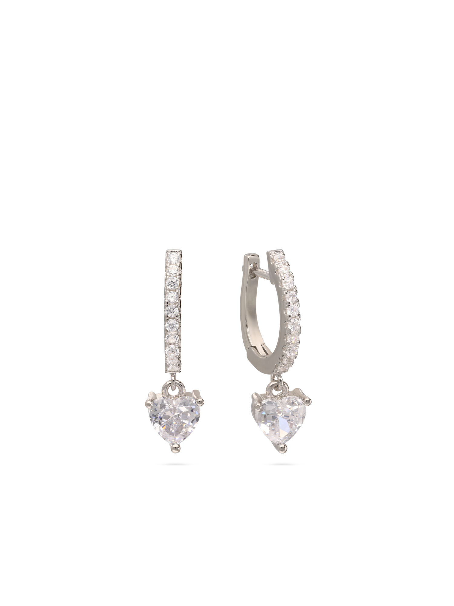 Argolas, Prata de lei 925, Zircónia de cultivo, Claro, Coração, Feito à mão, Prateado, comprimento do brinco: 2.3 cm, largura do brinco: 0.6 cm, 3.30 gramas.