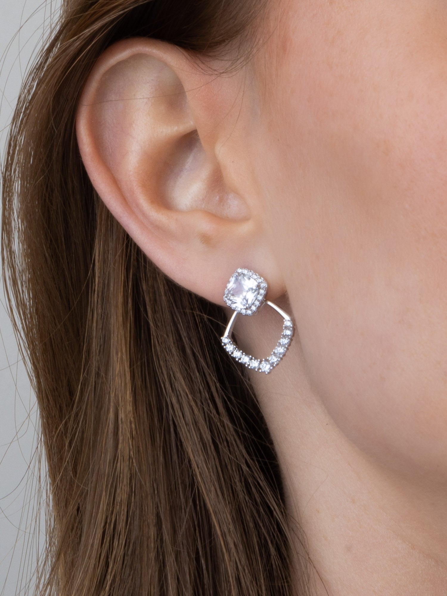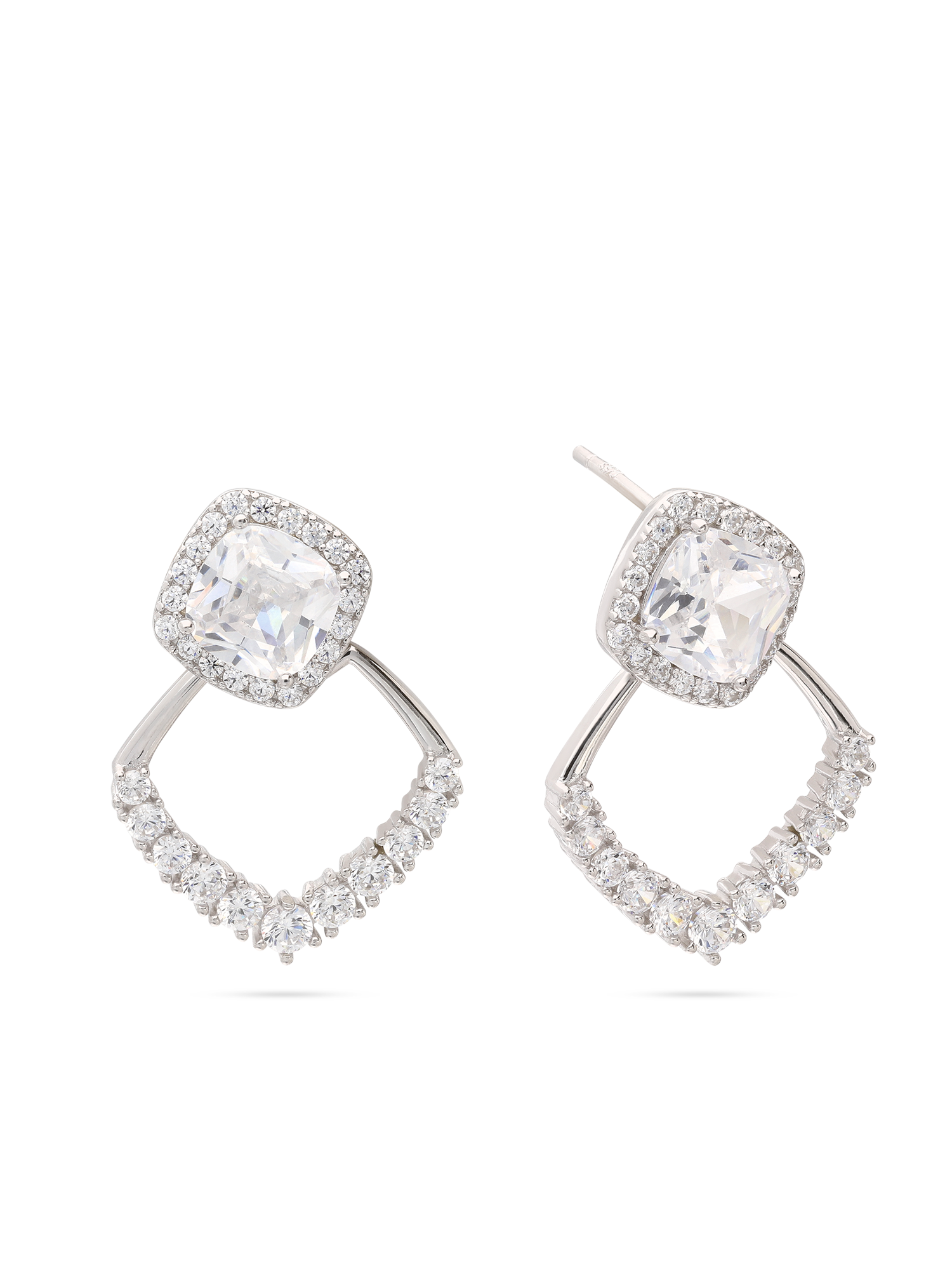 Pendentes, Prata de lei 925, Zircónia de cultivo, Claro, Quadrado, Feito à mão,, Prateado, comprimento do brinco: 2.2 cm, largura do brinco: 1.5 cm, 3.08 gramas.