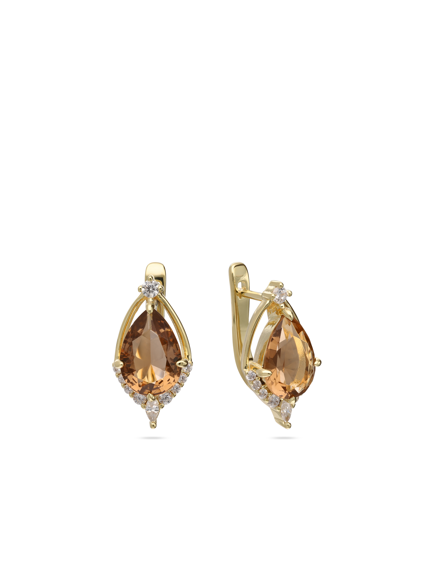 Brincos de placa, Banhado a Ouro, Zircónia de cultivo, Claro, Castanho, Lágrima, Feito à mão, Dourado, comprimento do brinco: 1.5 cm, largura do brinco: 0.9 cm, 3.47 gramas.