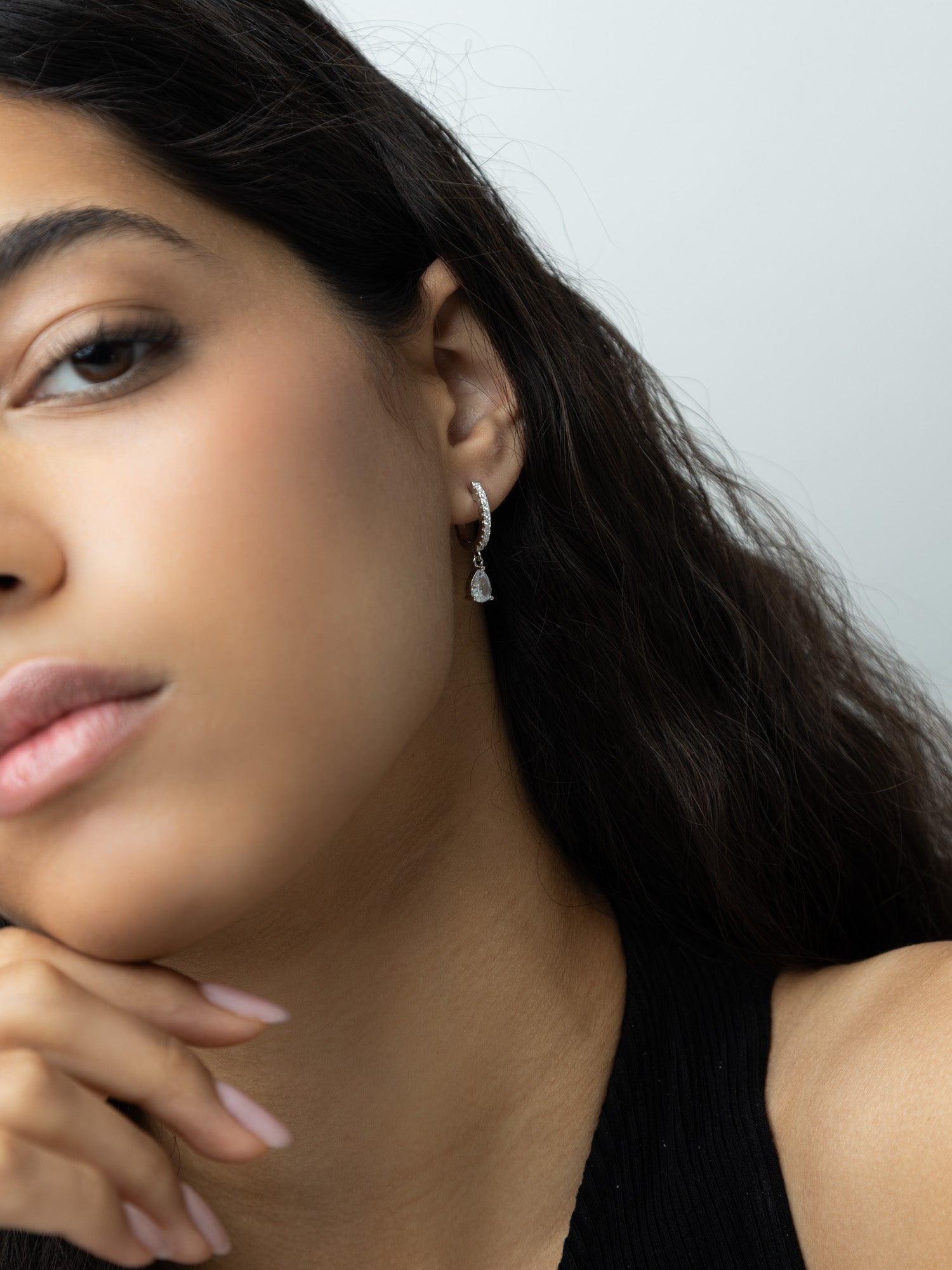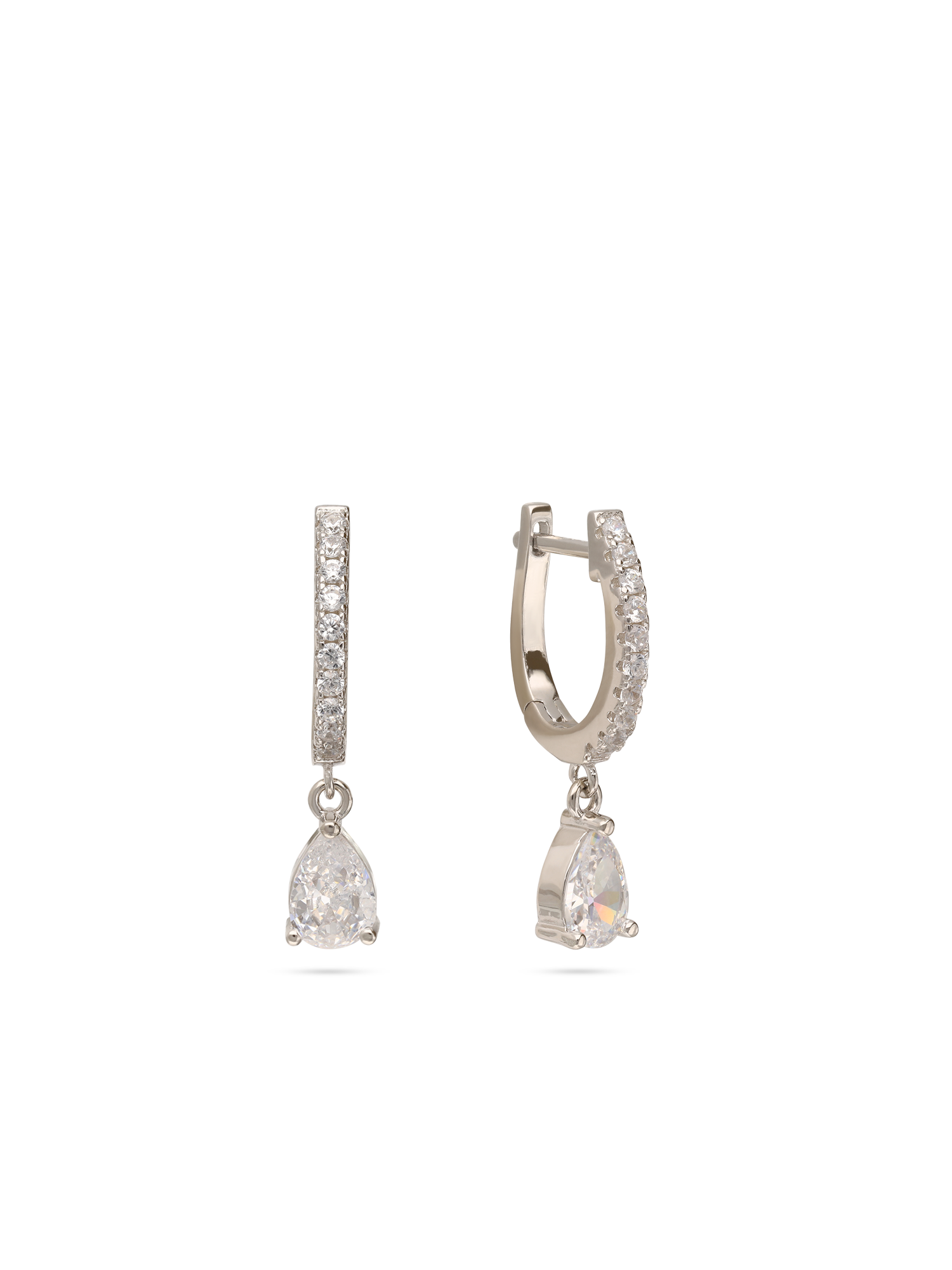 Argolas, Prata de lei 925, Zircónia de cultivo, Claro, Lágrima, Feito à mão,, Prateado, comprimento do brinco: 2.5 cm, largura do brinco: 1.2 cm, 3.50 gramas.