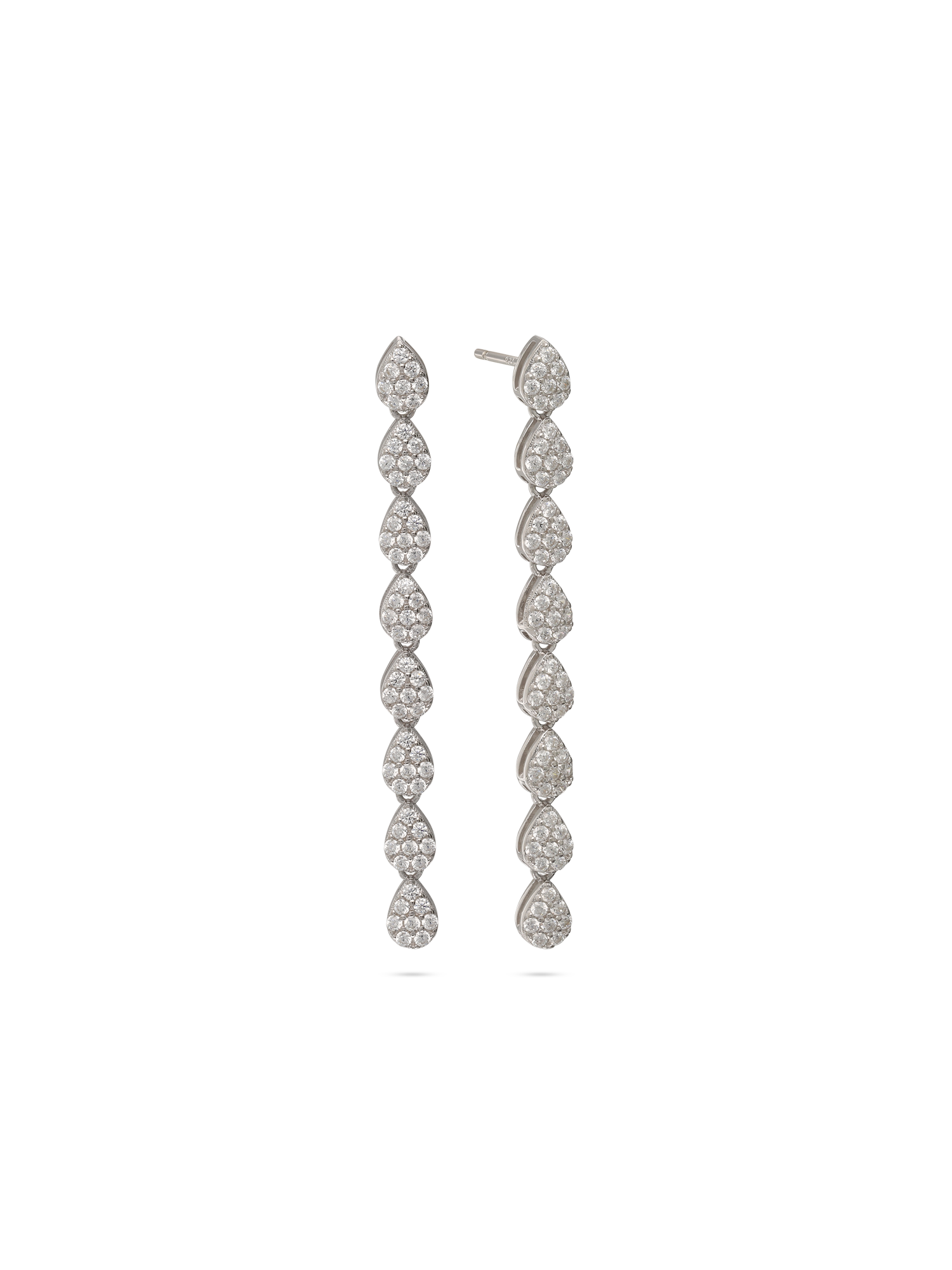 Pendentes, Prata de lei 925, Zircónia de cultivo, Claro, Lágrima, Feito à mão, Prateado, comprimento do brinco: 4.8 cm, largura do brinco: 0.4 cm, 4.25 gramas.