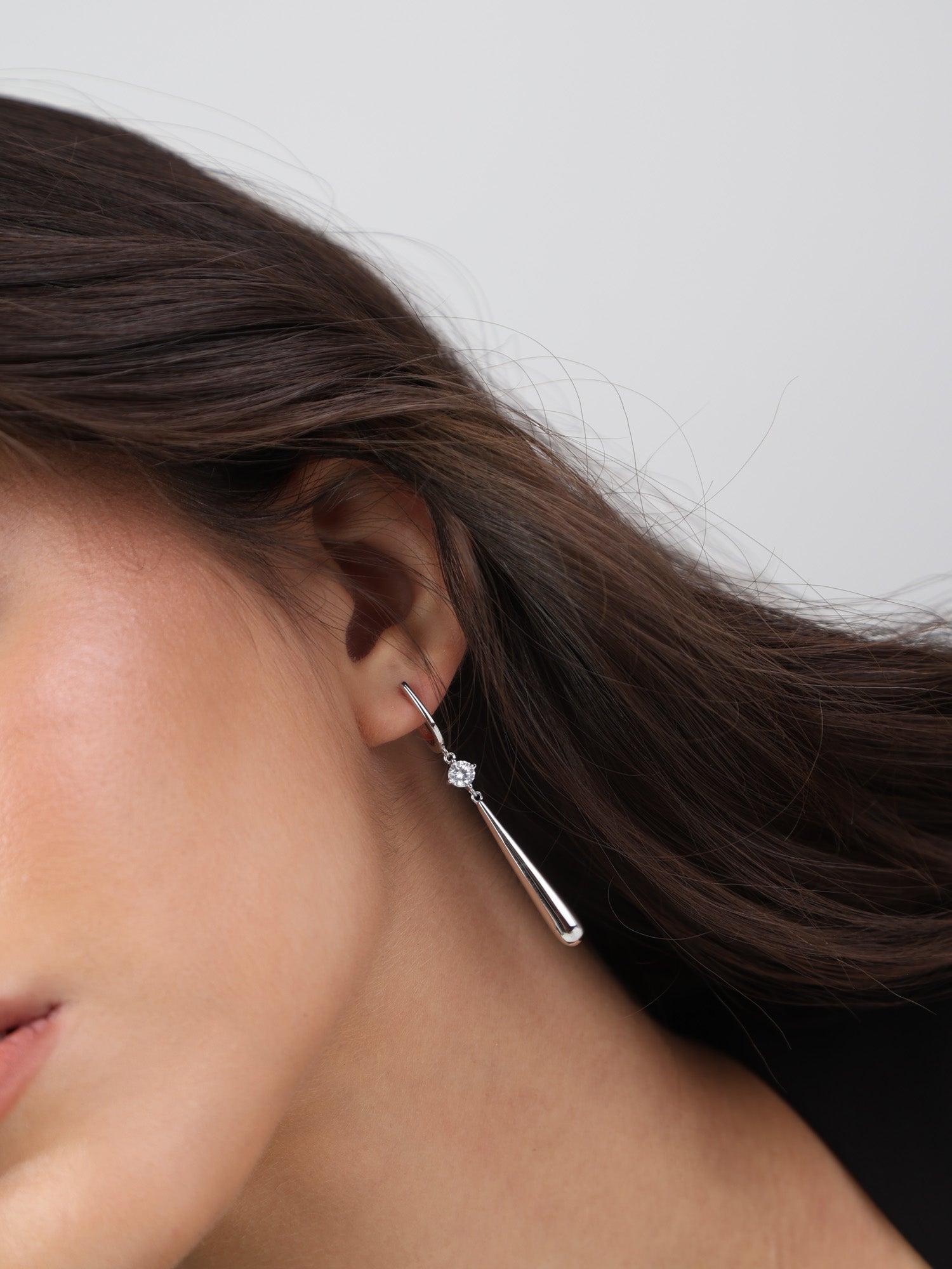 Pendentes, Prata de lei 925, Zircónia de cultivo, Claro, Círculo, Feito à mão, Prateado, comprimento do brinco: 5.5 cm, largura do brinco: 0.5 cm, 5.87 gramas.