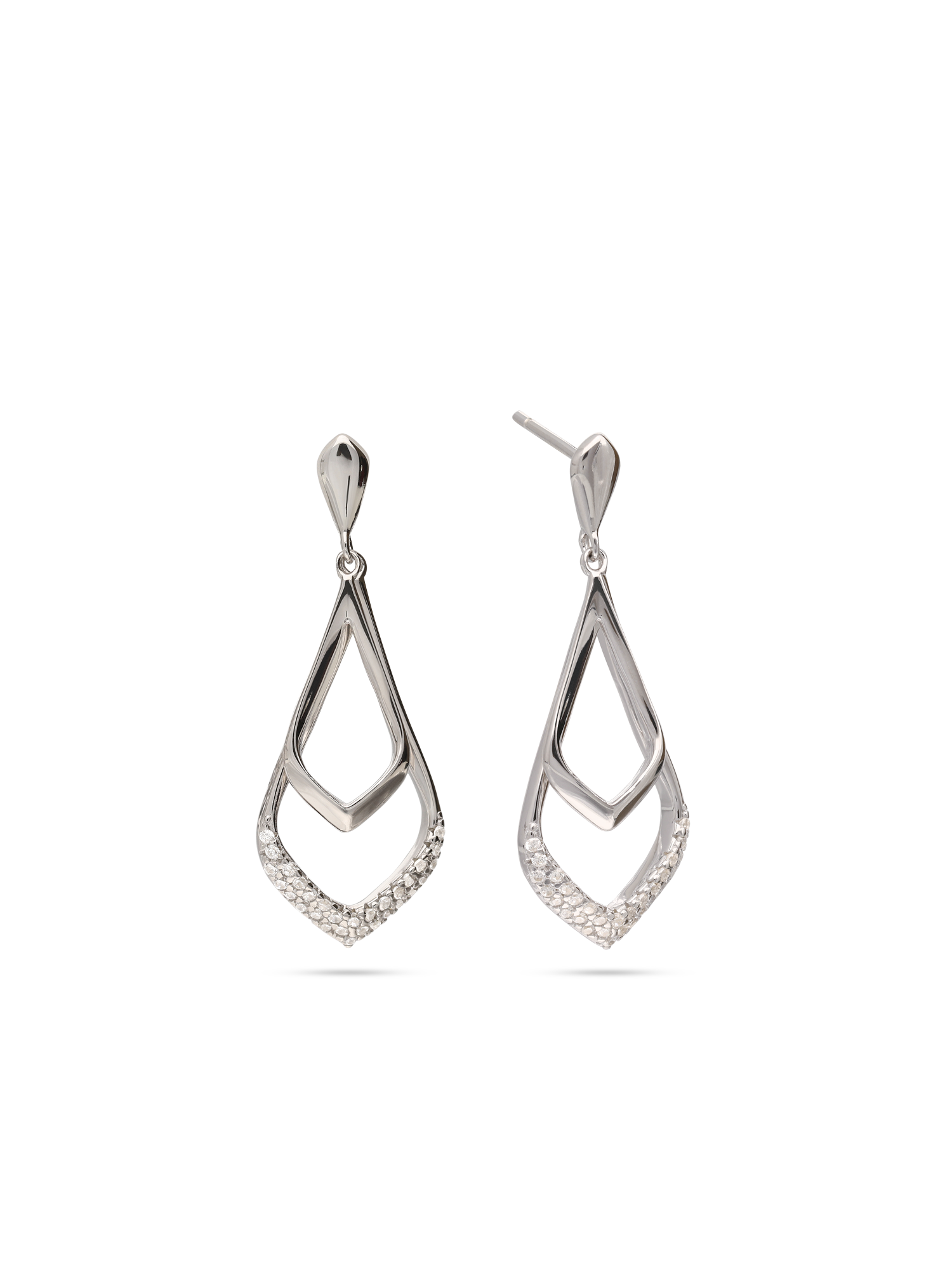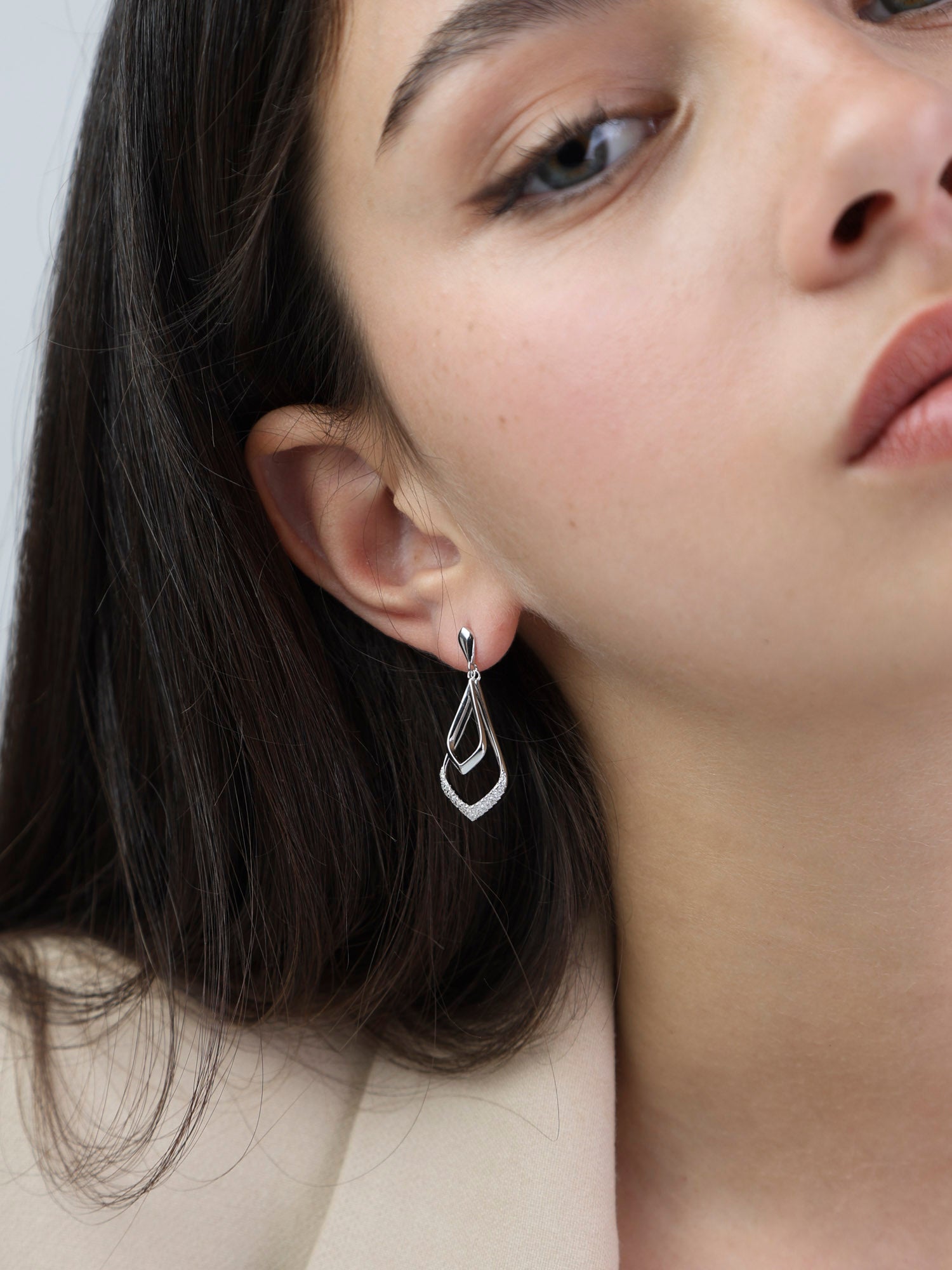 Pendentes, Prata de lei 925, Zircónia de cultivo, Claro, Quadrado, Feito à mão, Prateado, comprimento do brinco: 3.5 cm, largura do brinco: 1.3 cm, 3.71 gramas.