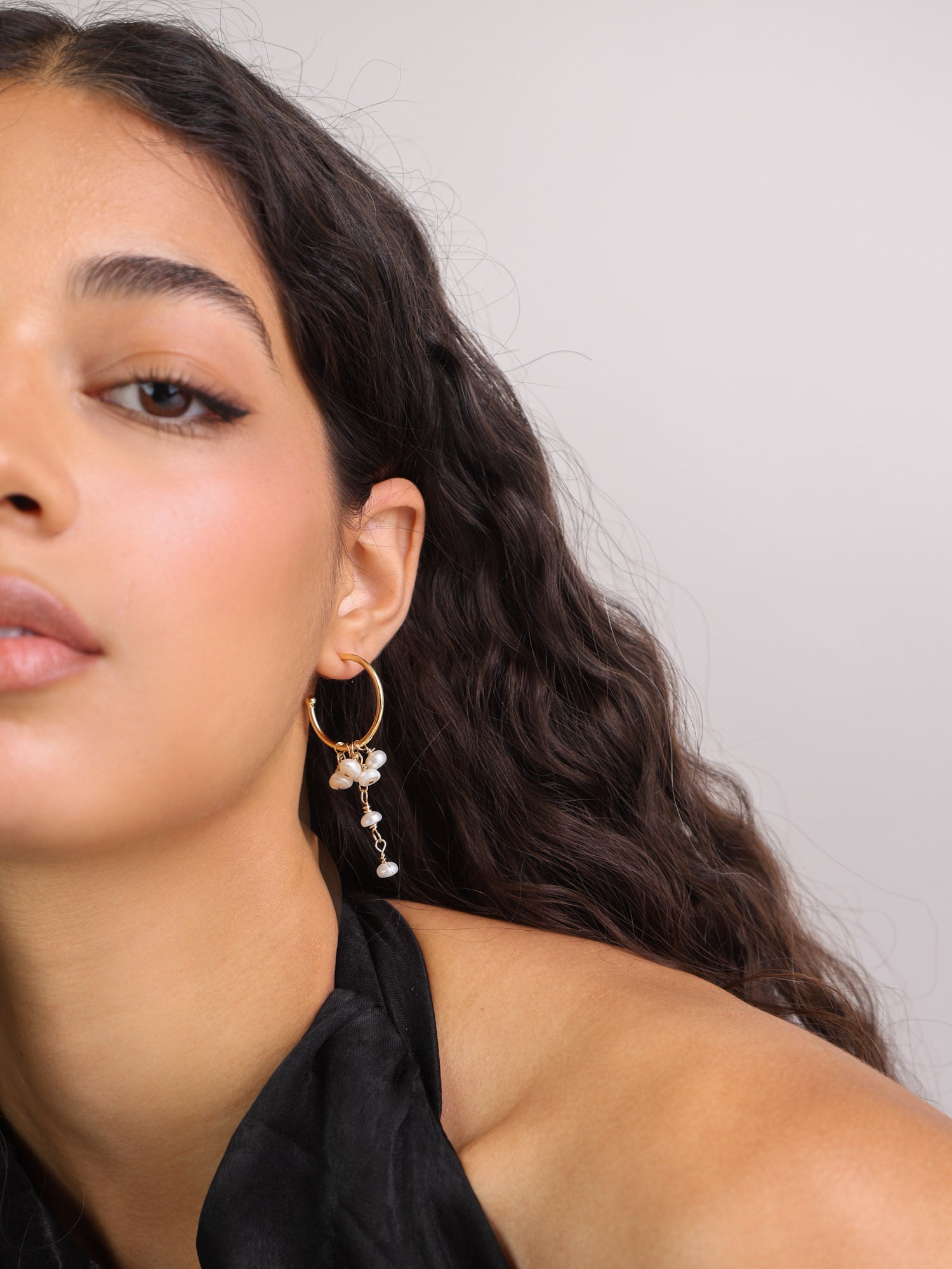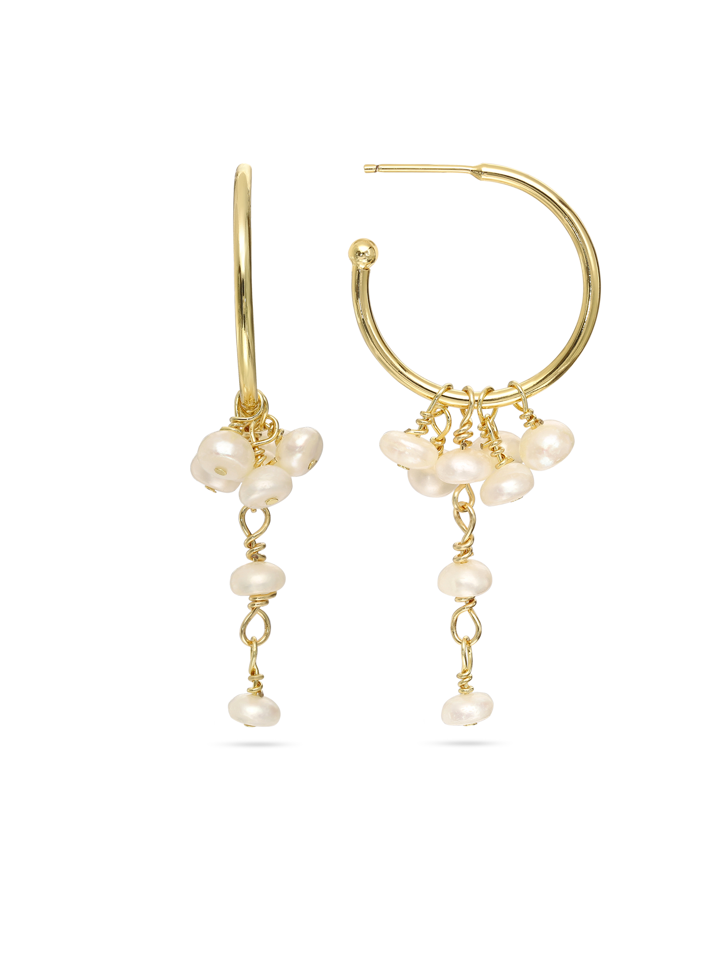 Argolas, Banhado a Ouro, Pérola cultivada, Branco, Variedade de formas, Dourado, comprimento do brinco: 6.9 cm, largura do brinco: 0.5 cm, 7.26 gramas.