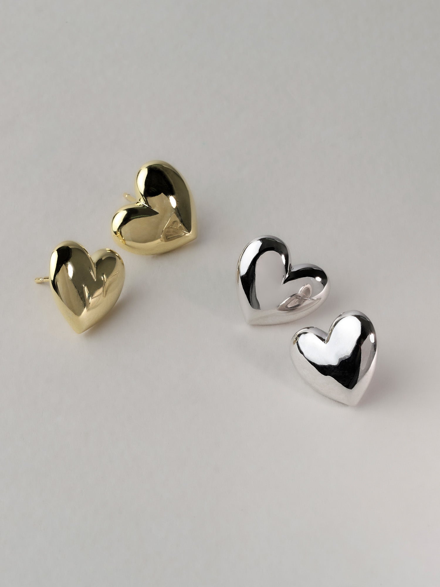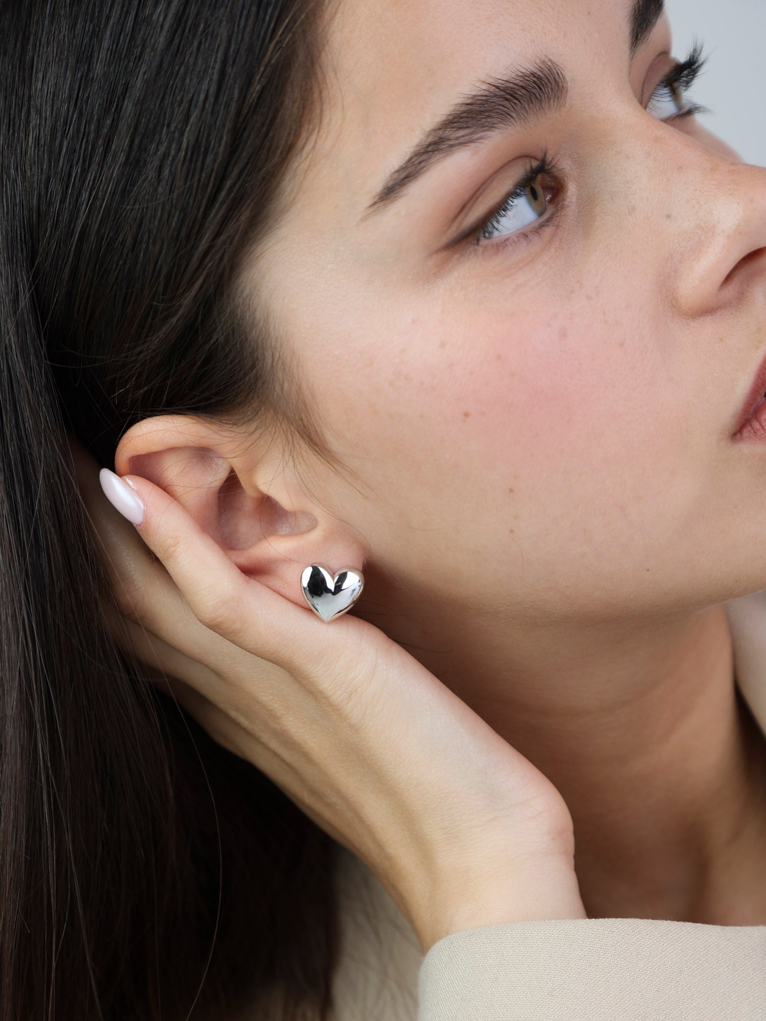 Brincos de placa, Prata de lei 925, Nenhuma pedra, Sem cor, Coração, Prateado, comprimento do brinco: 0.9 cm, largura do brinco: 1.5 cm, 3.96 gramas.