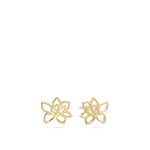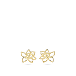 Brincos de placa, Banhado a Ouro, Nenhuma pedra, Sem cor, Flor, Dourado, comprimento do brinco: 1.0 cm, largura do brinco: 1.0 cm, 0.80 gramas.
