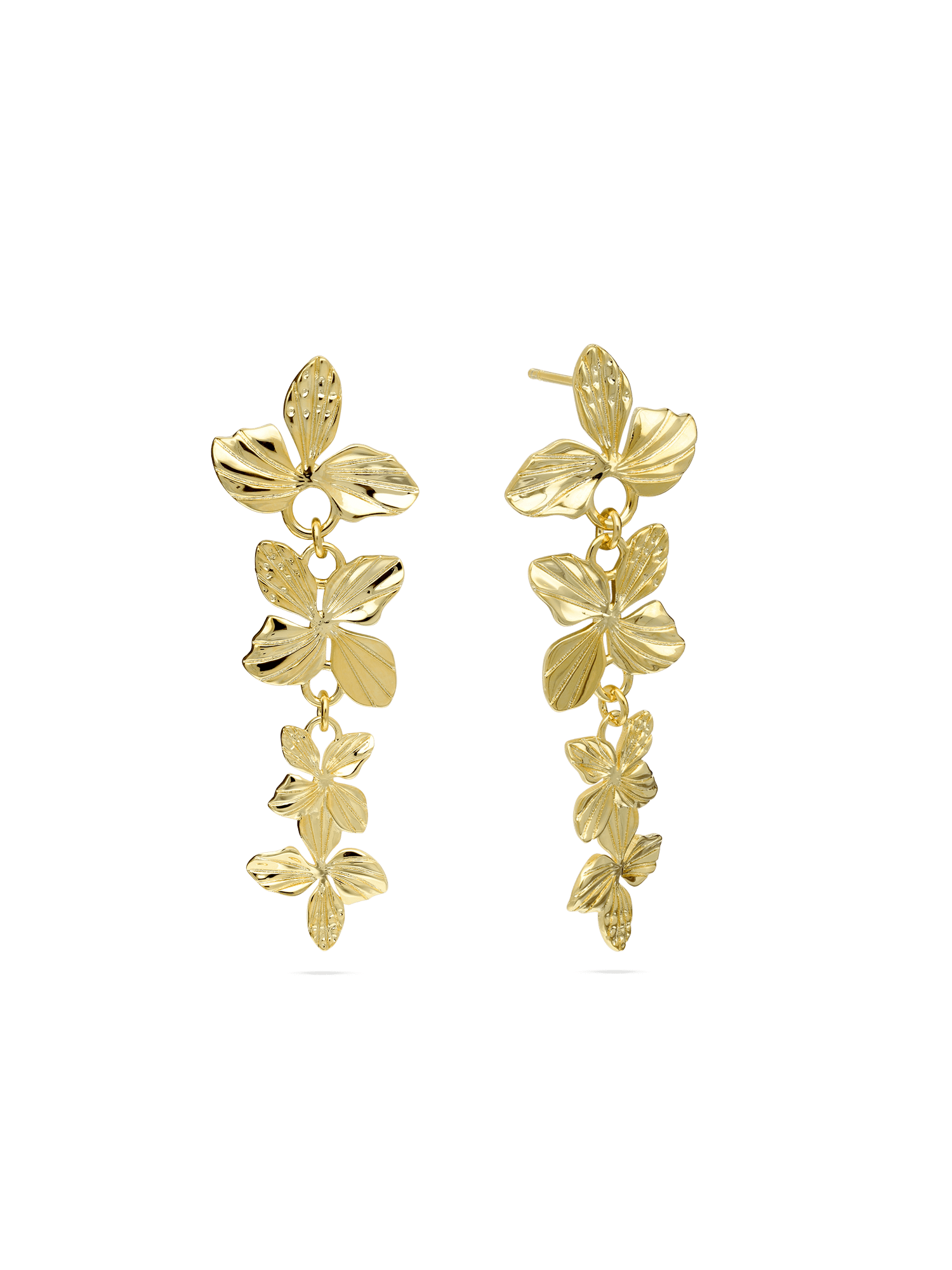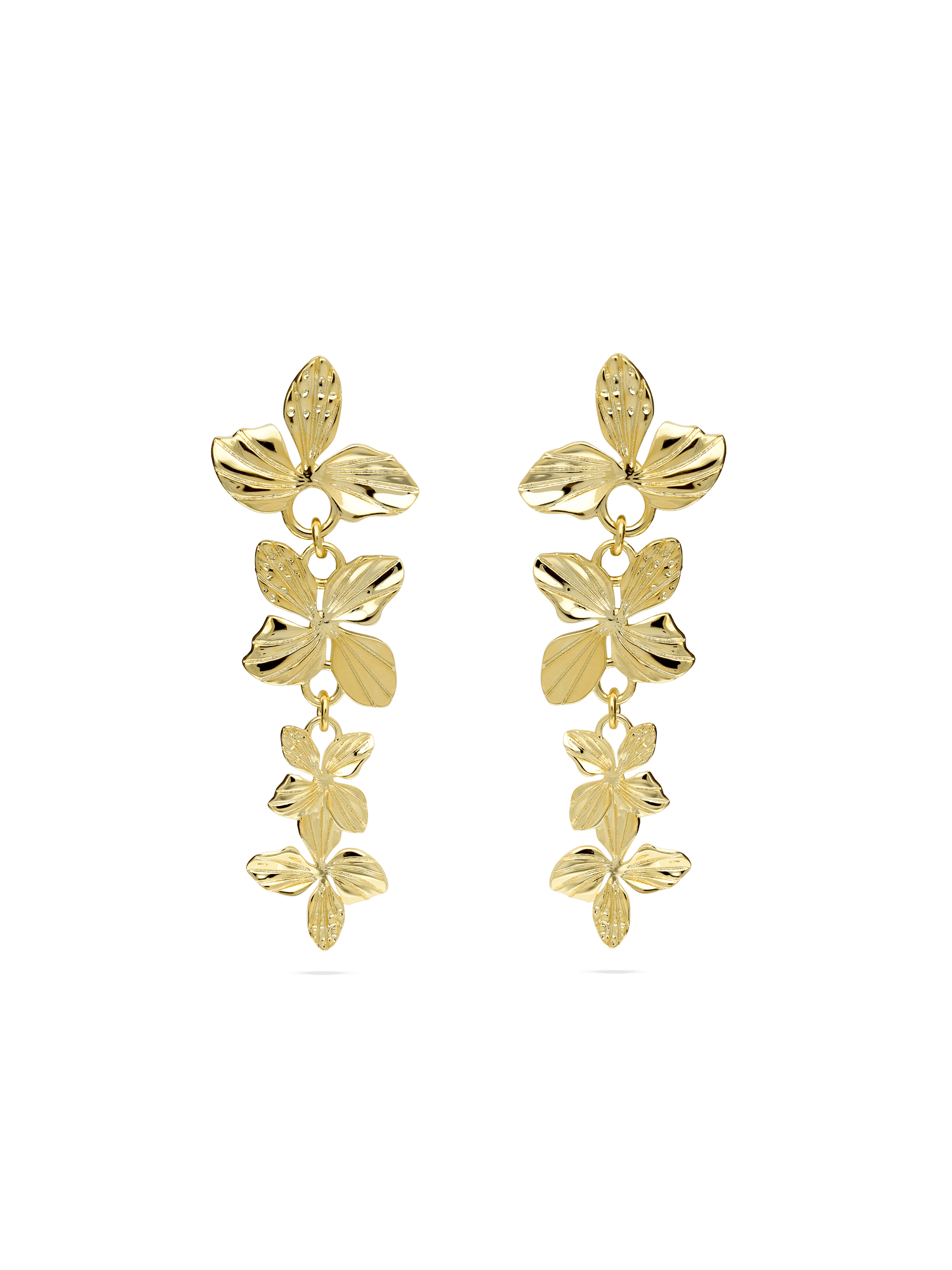 Pendentes, Banhado a Ouro, Nenhuma pedra, Sem cor, Flor, Dourado, comprimento do brinco: 4.6 cm, largura do brinco: 1.7 cm, 4.90 gramas.