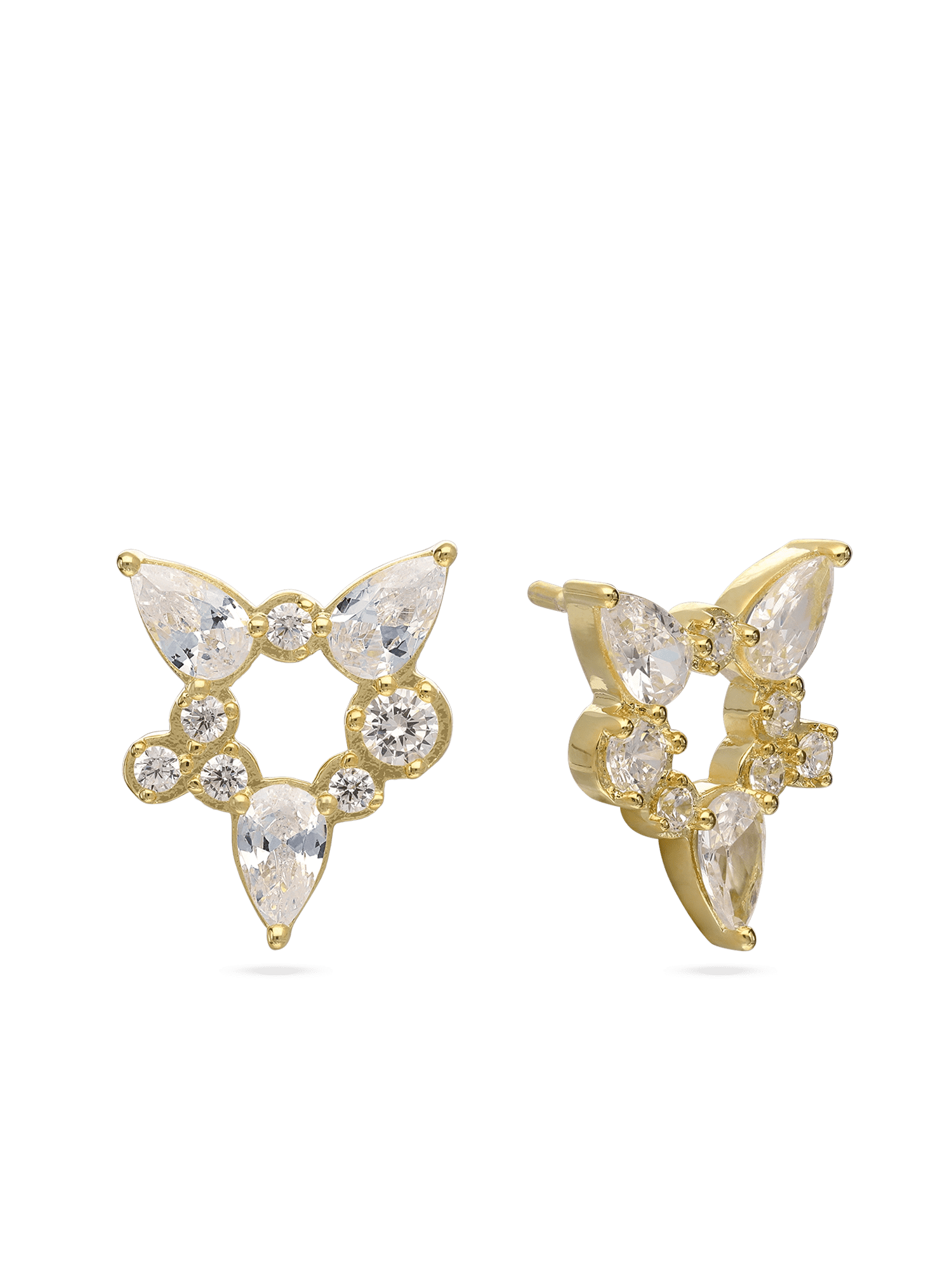 Brincos de placa, Banhado a Ouro, Zircónia de cultivo, Claro, Variedade de formas, Feito à mão, Dourado, comprimento do brinco: 1.5 cm, largura do brinco: 1.0 cm, 2.15 gramas.