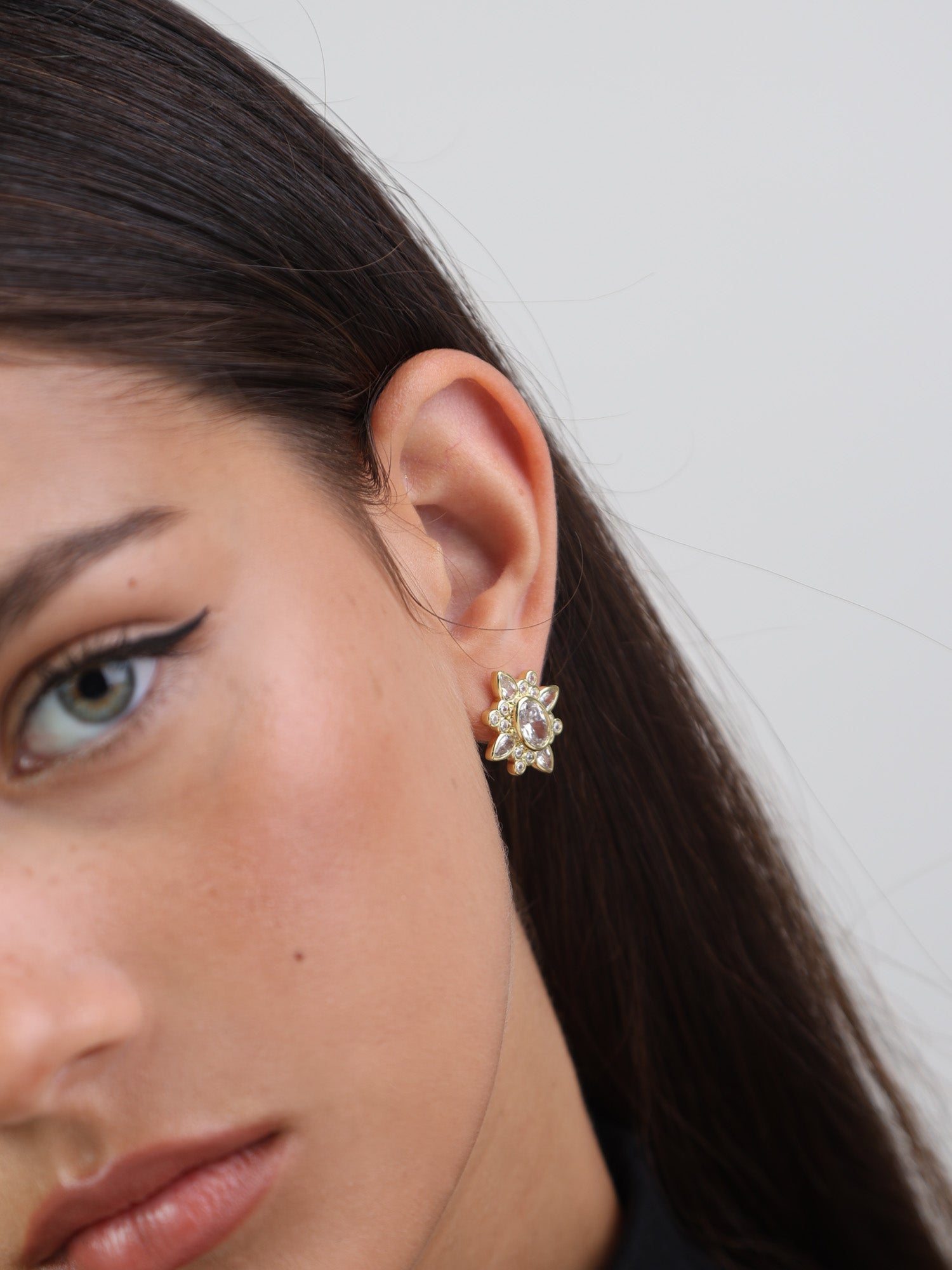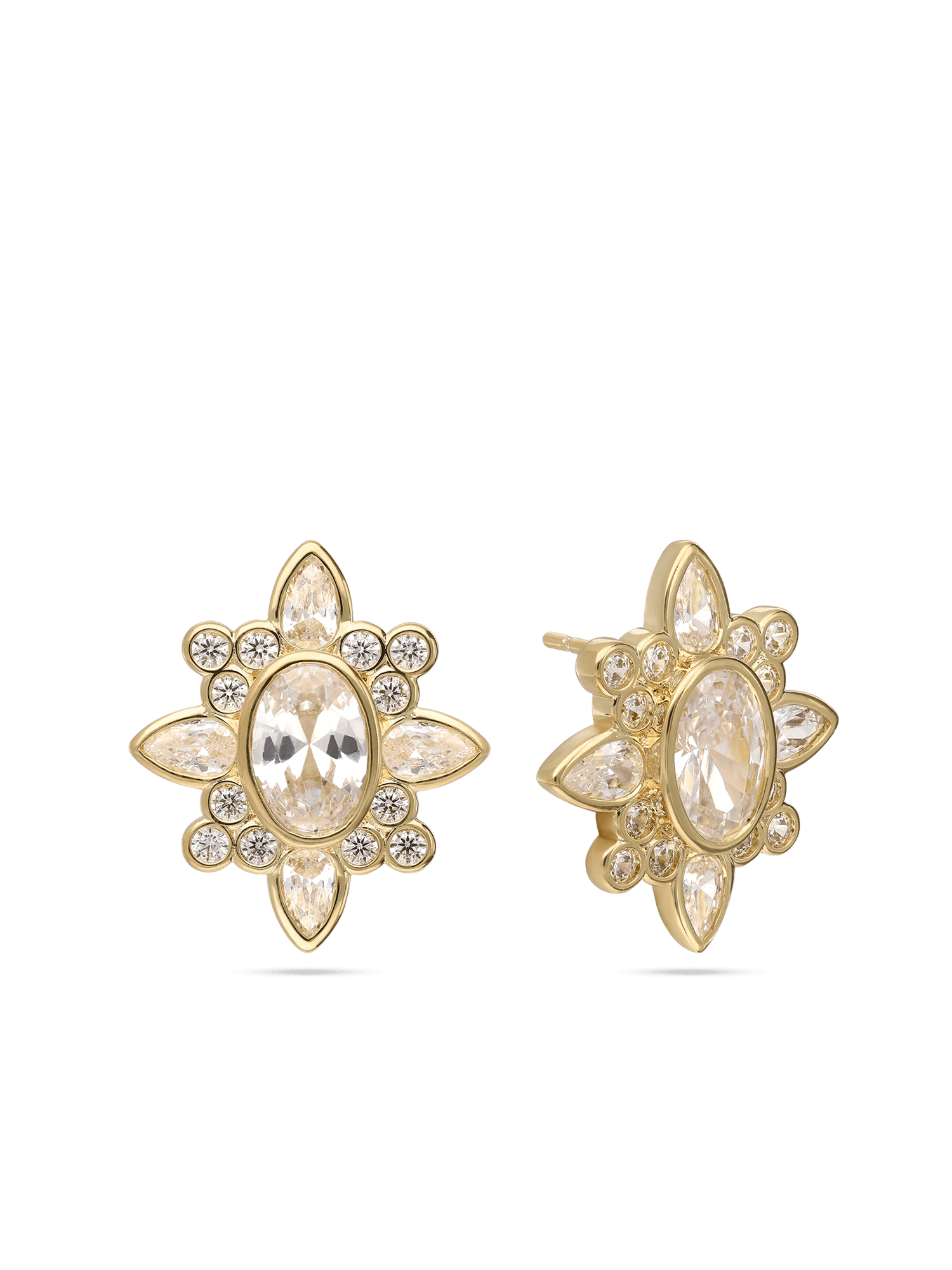 Brincos de placa, Banhado a Ouro, Zircónia de cultivo, Claro, Variedade de formas, Feito à mão, Dourado, comprimento do brinco: 2.1 cm, largura do brinco: 1.8 cm, 6.00 gramas.