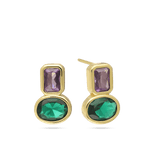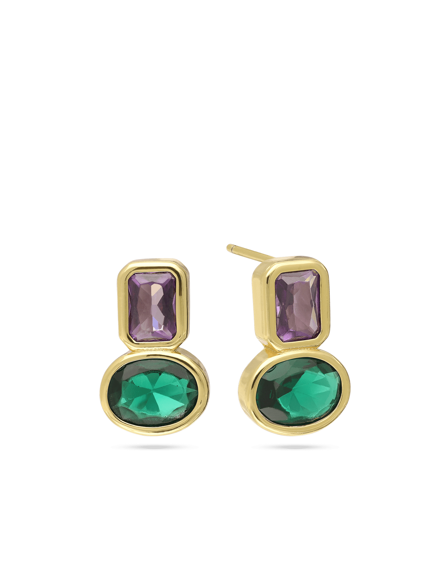 Pendentes, Banhado a Ouro, Zircónia de cultivo, Vidro cristal, Verde, Violeta, Quadrado, Círculo, Feito à mão, Dourado, comprimento do brinco: 1.7 cm, largura do brinco: 1.0 cm, 5.57 gramas.