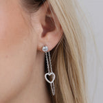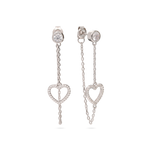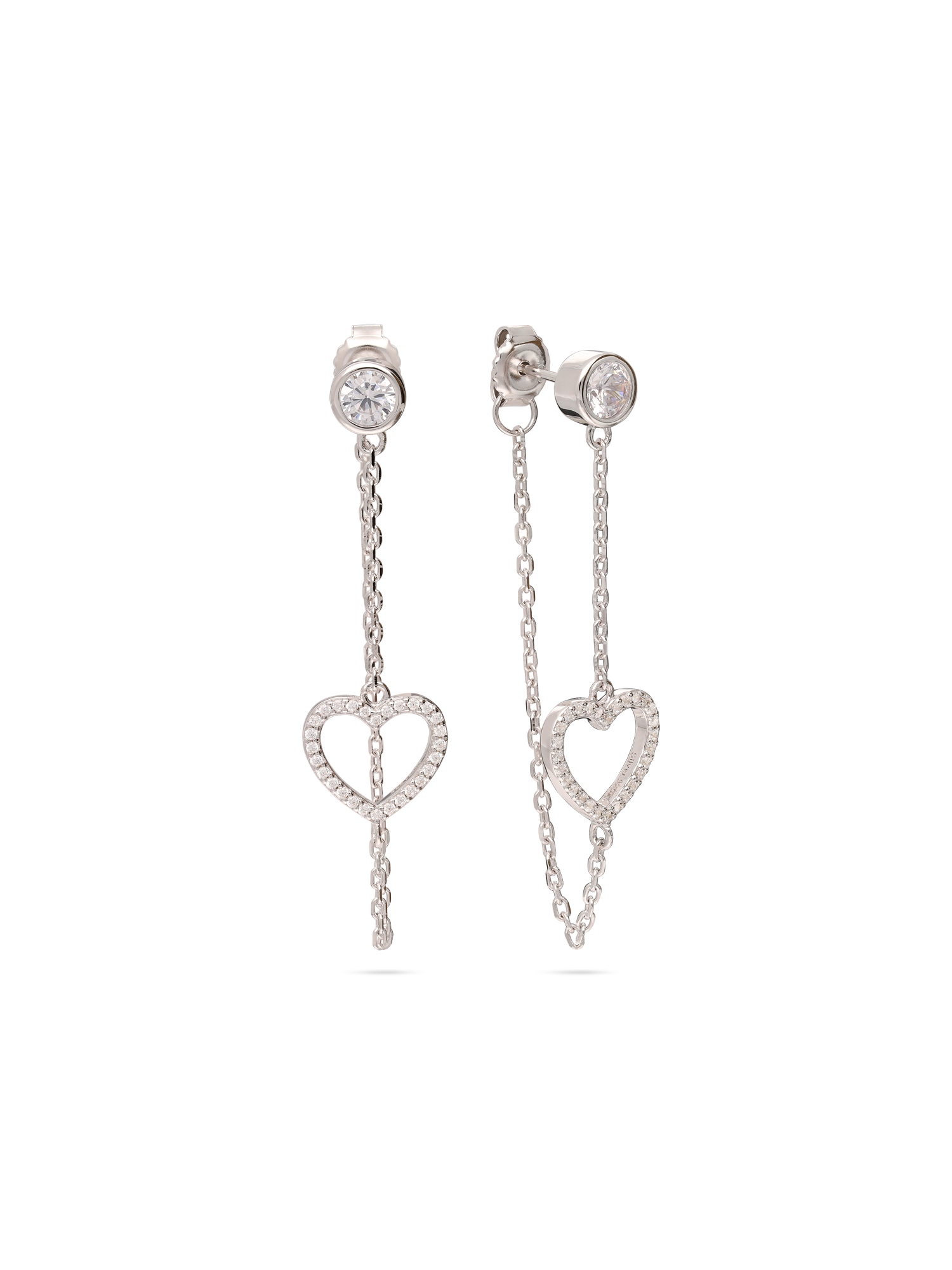 Pendentes, Prata de lei 925, Zircónia de cultivo, Claro, Coração, Feito à mão, Prateado, comprimento do brinco: 5.0 cm, largura do brinco: 1.2 cm, 4.22 gramas.