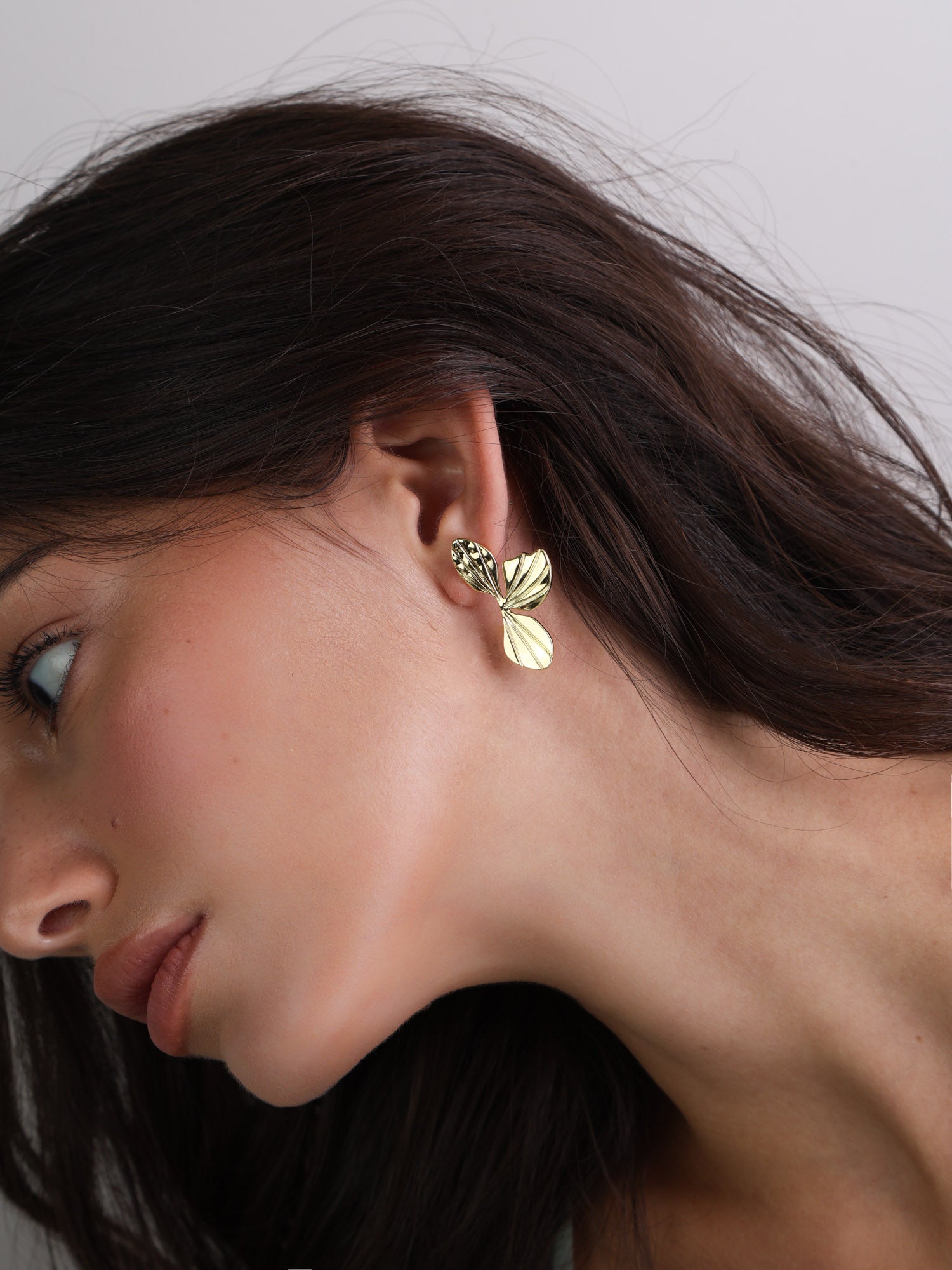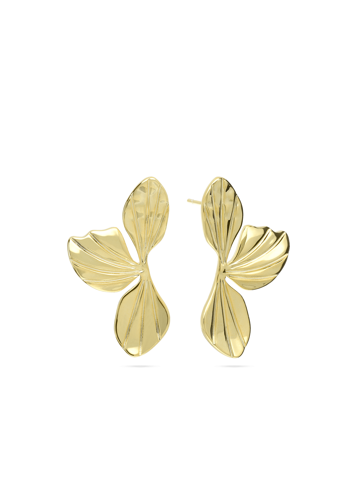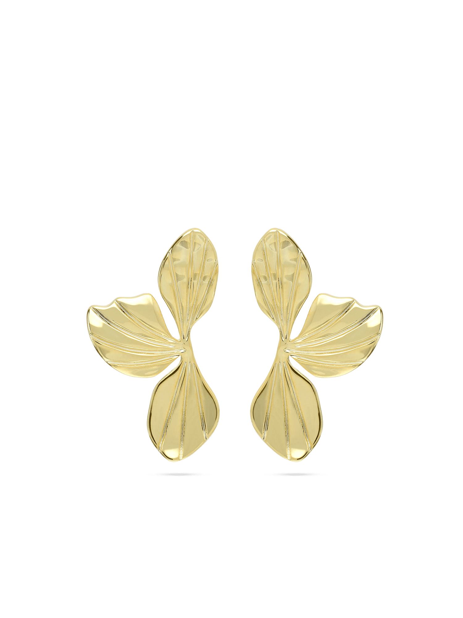 Brincos de placa, Banhado a Ouro, Nenhuma pedra, Sem cor, Flor, Dourado, comprimento do brinco: 3.4 cm, largura do brinco: 2.0 cm, 6.67 gramas.