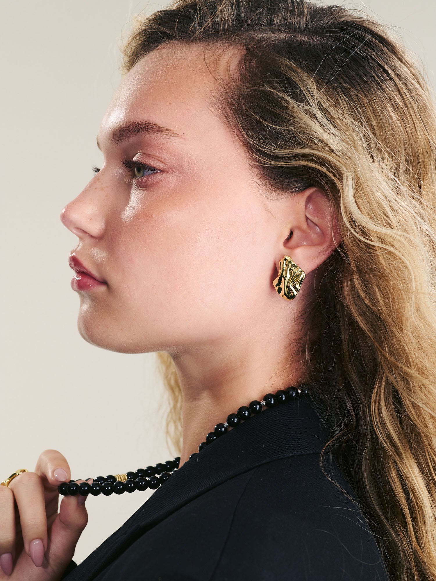 Brincos de placa, Banhado a Ouro, Nenhuma pedra