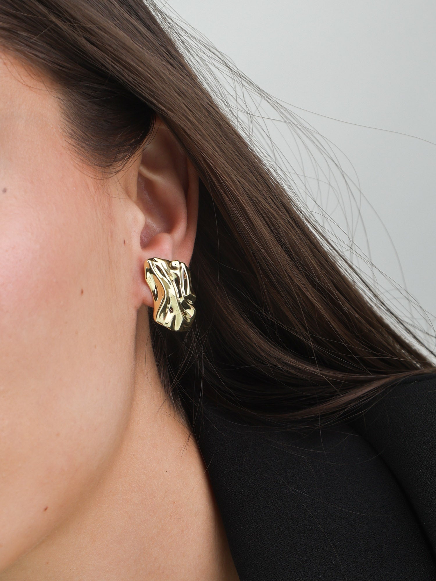 Brincos de placa, Banhado a Ouro, Nenhuma pedra, Sem cor, Forma não específica, Dourado, largura do brinco: 1.7 cm, comprimento do brinco: 2.6 cm, 6.60 gramas.
