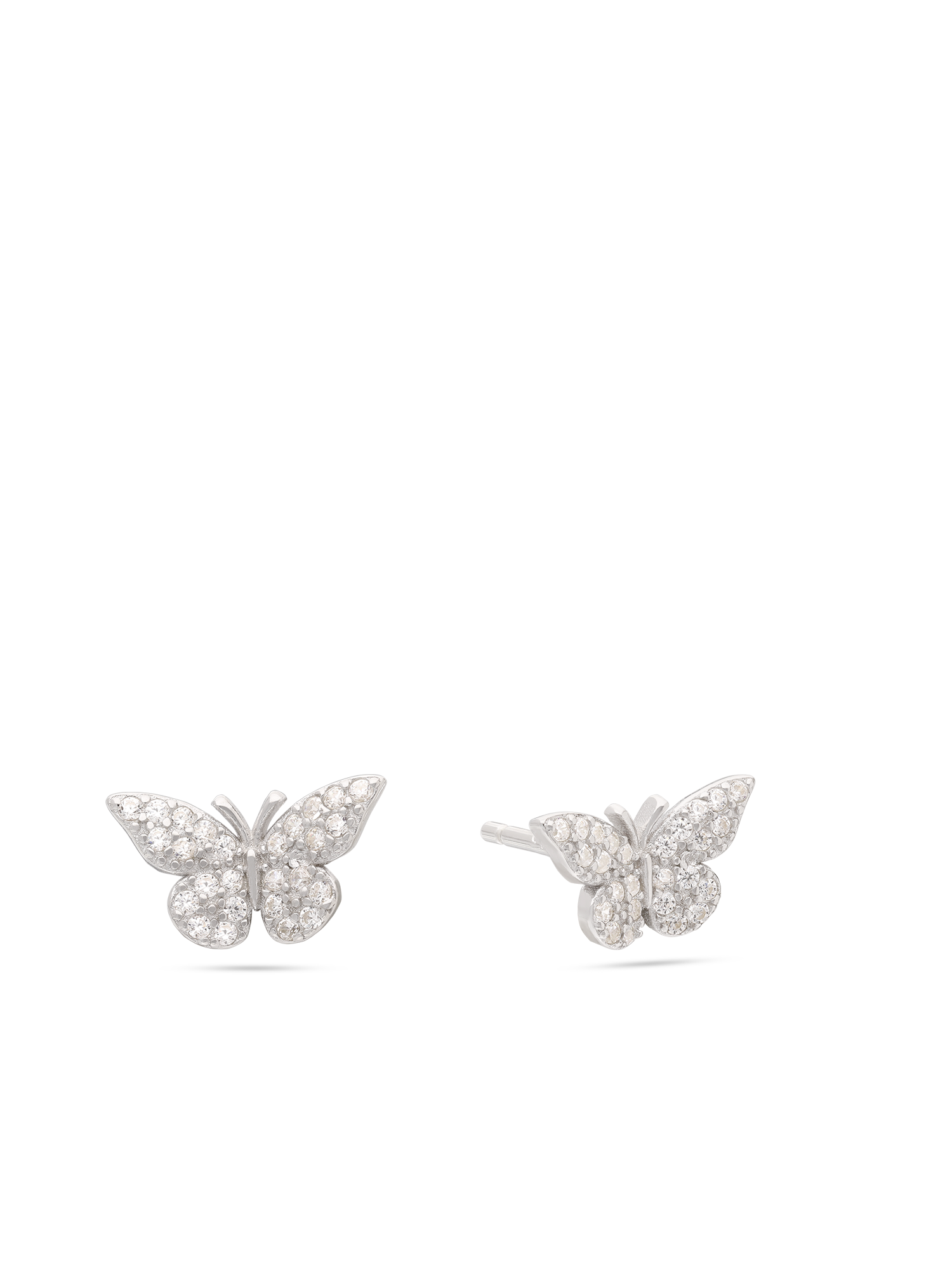 Brincos de placa, Prata de lei 925, Zircónia de cultivo, Claro, Borboleta, Feito à mão, Prateado, comprimento do brinco: 0.6 cm, largura do brinco: 1.1 cm, 1.14 gramas.