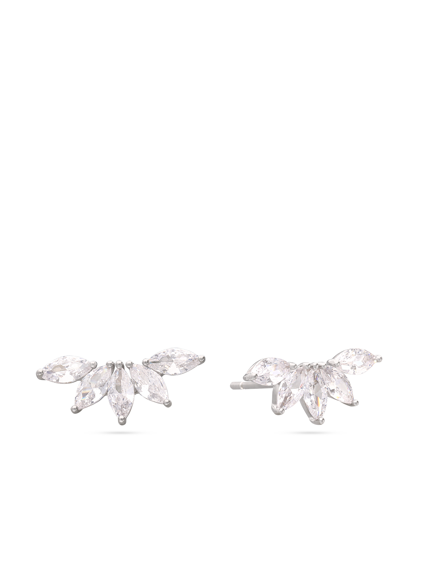 Brincos de placa, Prata de lei 925, Zircónia de cultivo, Claro, Folha, Feito à mão, Prateado, comprimento do brinco: 1.5 cm, largura do brinco: 0.6 cm, 1.44 gramas.