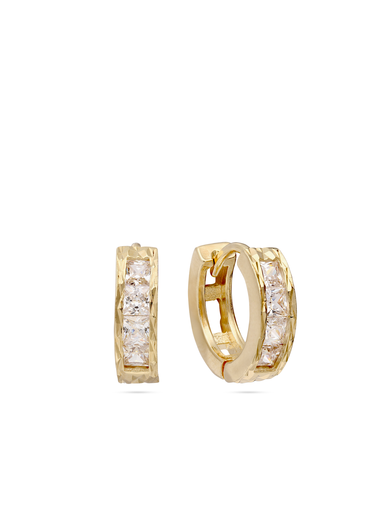 Argolas, Banhado a Ouro, Zircónia de cultivo, Claro, Redondo, Feito à mão, Dourado, diâmetro das argolas: 1.5 cm, 4.50 gramas.