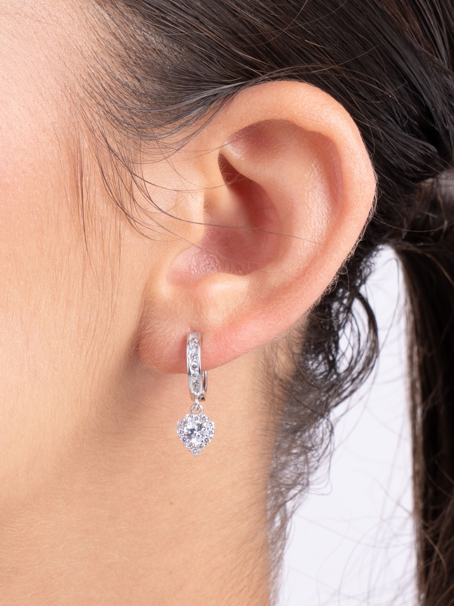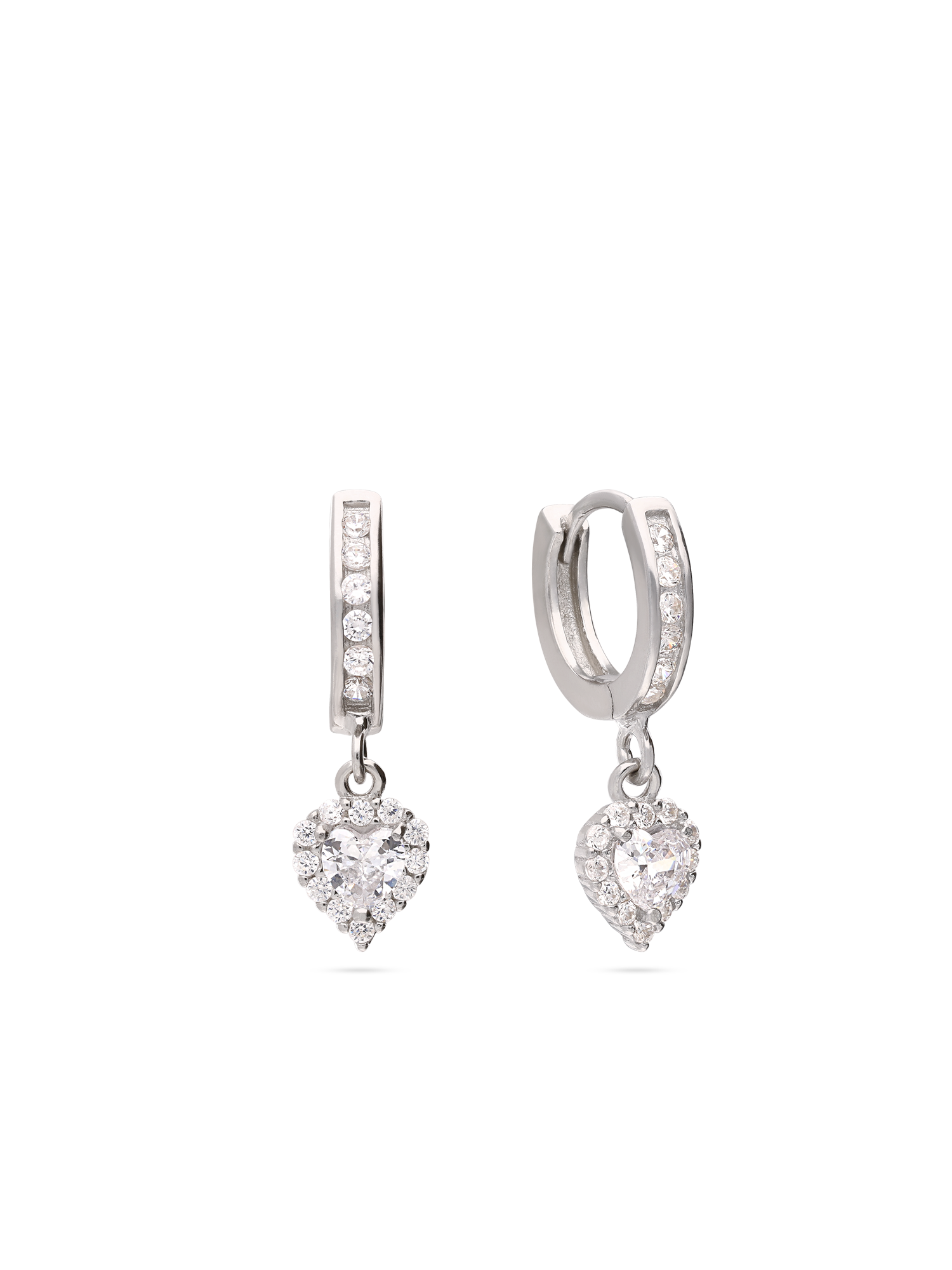 Pendentes, Prata, Zircónia de cultivo, Claro, Coração, Feito à mão,, Prateado, comprimento do brinco: 2.1 cm, largura do brinco: 0.6 cm, 2.80 gramas.