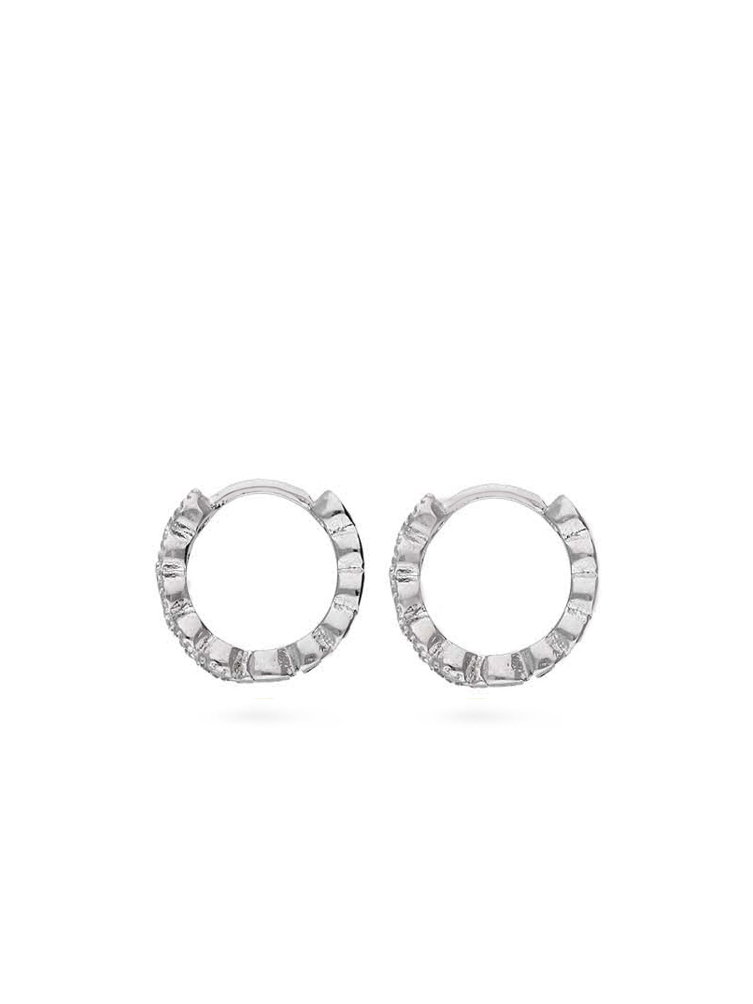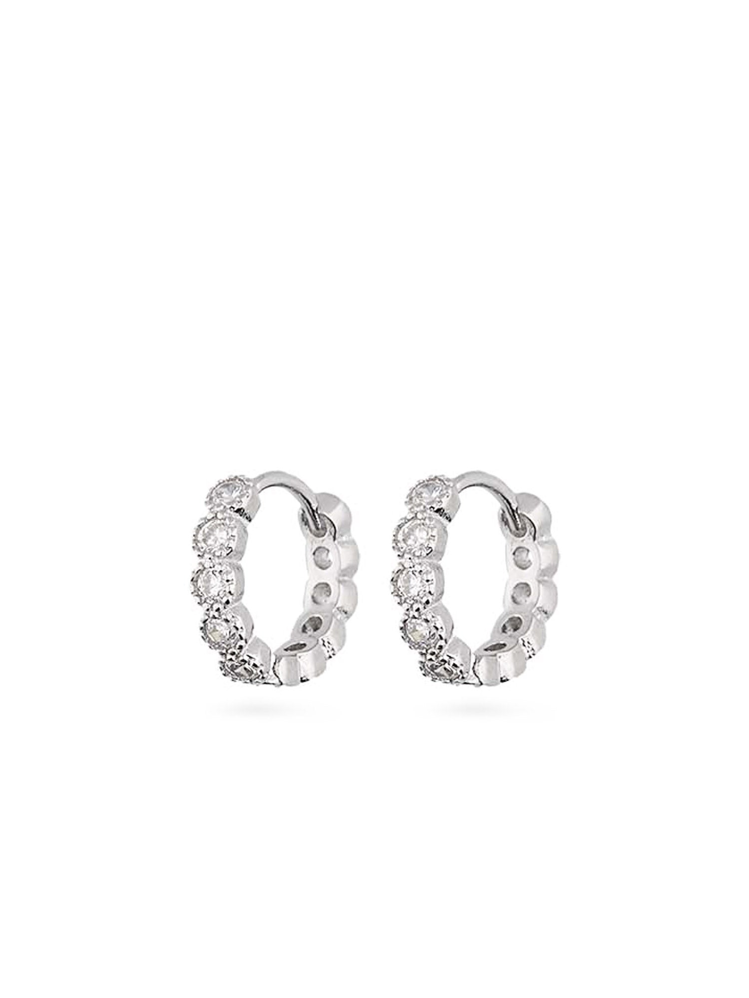 Argolas, Prata, Zircónia de cultivo, Claro, Círculo, Feito à mão,, Prateado, comprimento do brinco: 1.2 cm, largura do brinco: 1.2 cm, 1.60 gramas.