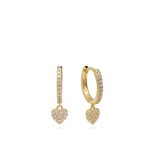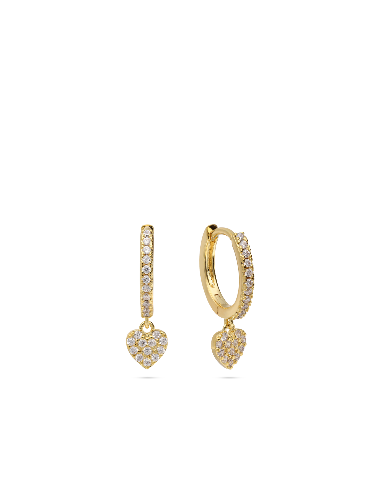 Argolas, Banhado a Ouro, Zircónia de cultivo, Claro, Coração, Feito à mão,, Dourado, comprimento do brinco: 2.0 cm, largura do brinco: 0.5 cm, 1.56 gramas.