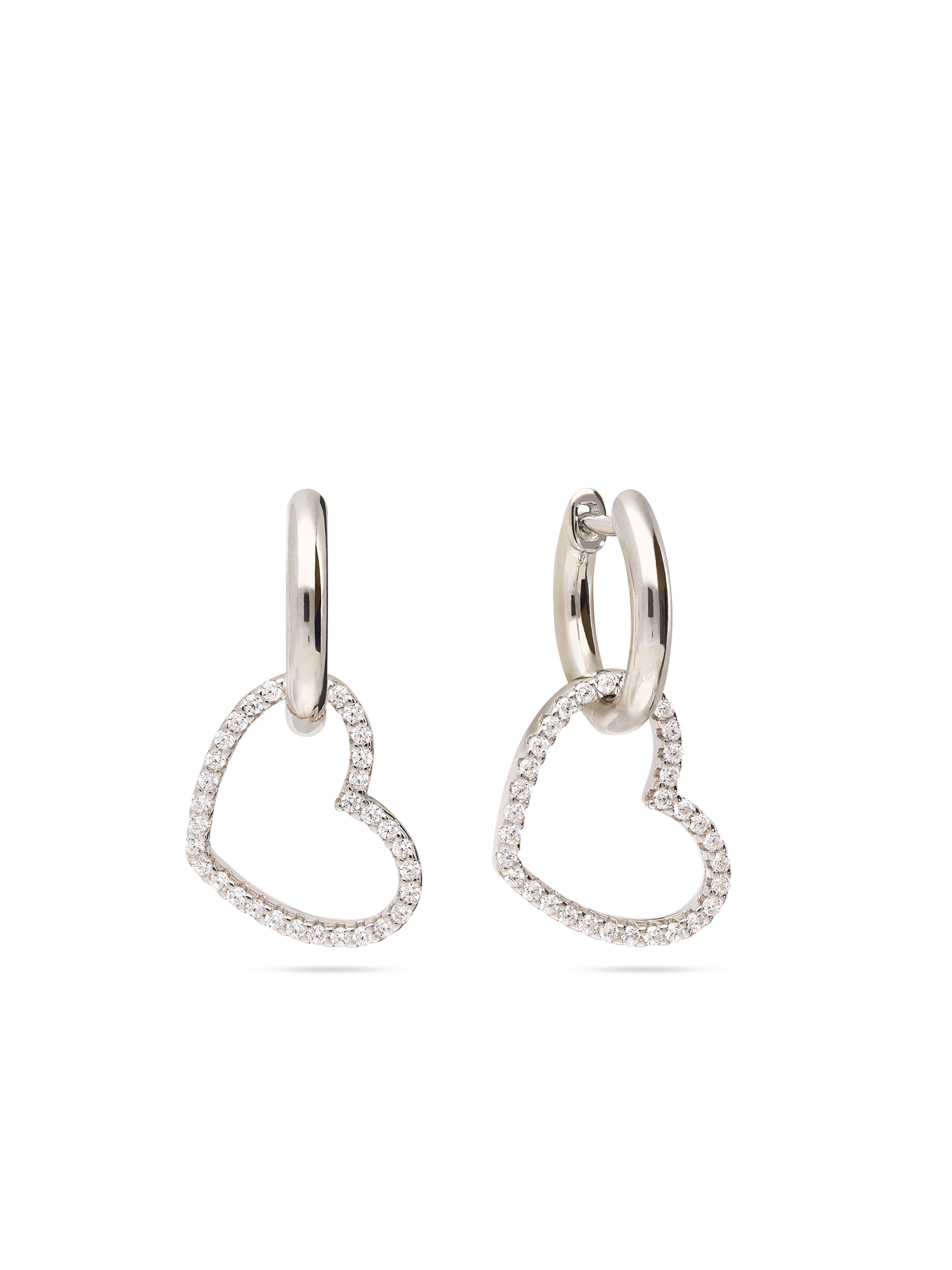 Pendentes, Prata de lei 925, Zircónia de cultivo, Claro, Coração, Feito à mão,, Prateado, comprimento do brinco: 2.0 cm, largura do brinco: 1.3 cm, 3.21 gramas.