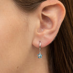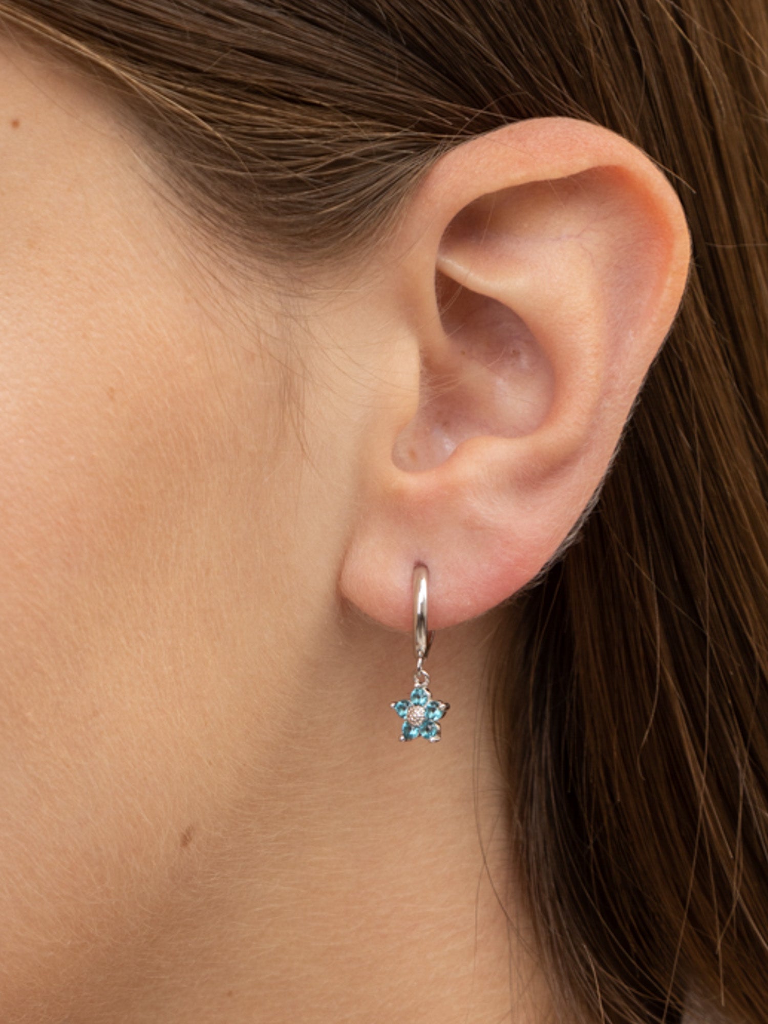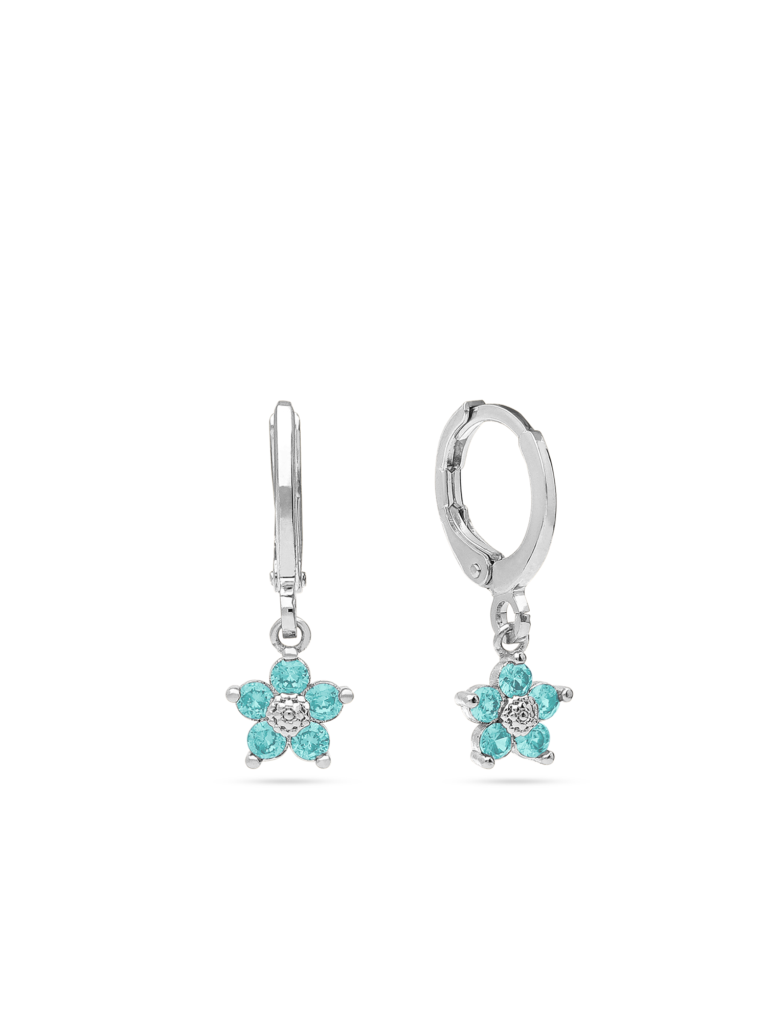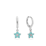 Argolas, Prata de lei 925, Zircónia de cultivo, Azul céu, Flor, Feito à mão,, Prateado, comprimento do brinco: 2.0 cm, largura do brinco: 0.7 cm, 2.17 gramas.