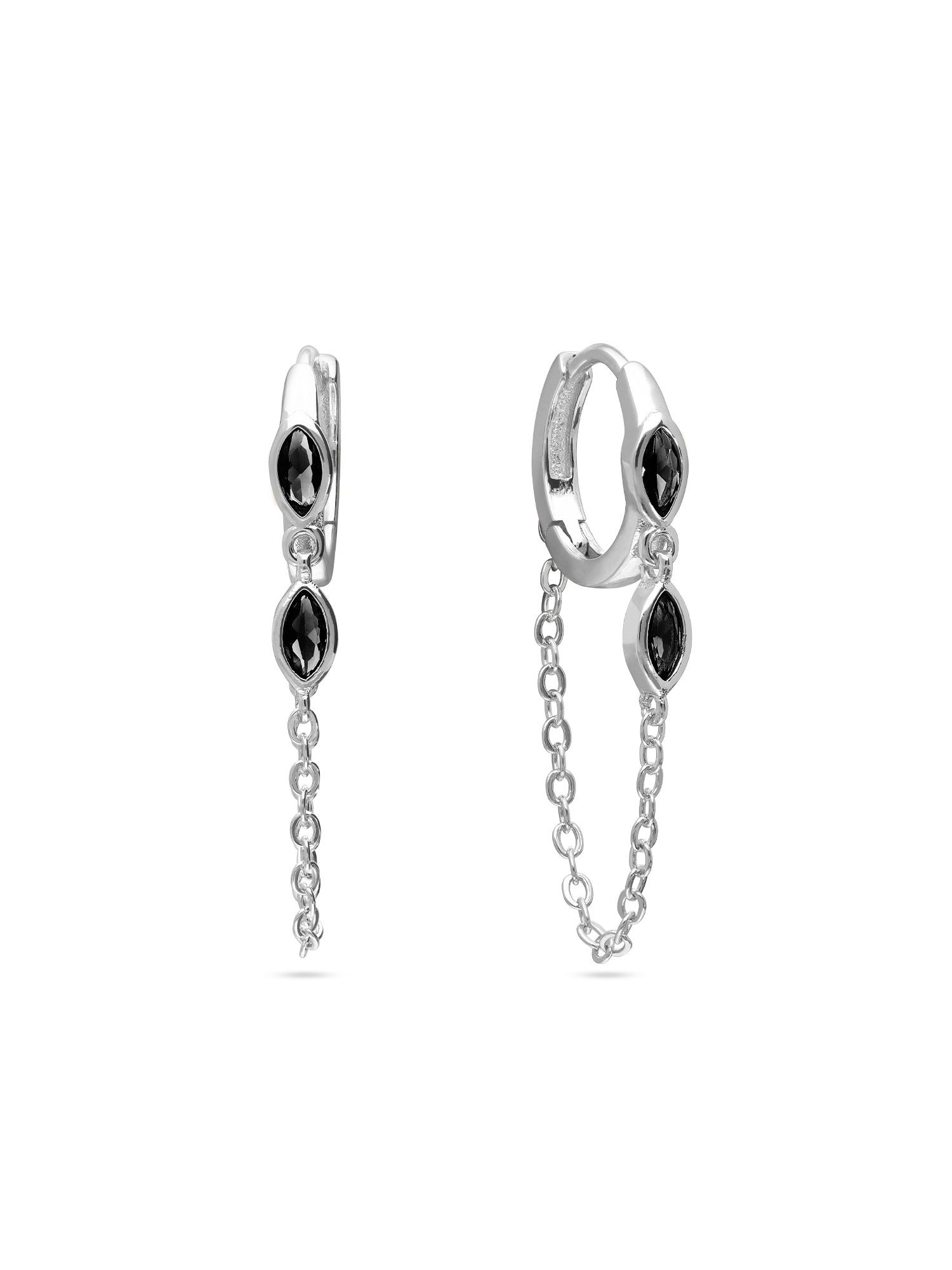 Argolas, Prata de lei 925, Zircónia de cultivo, Preto, Círculo, Feito à mão,, Prateado, comprimento do brinco: 3.4 cm, largura do brinco: 0.3 cm, 3.10 gramas.