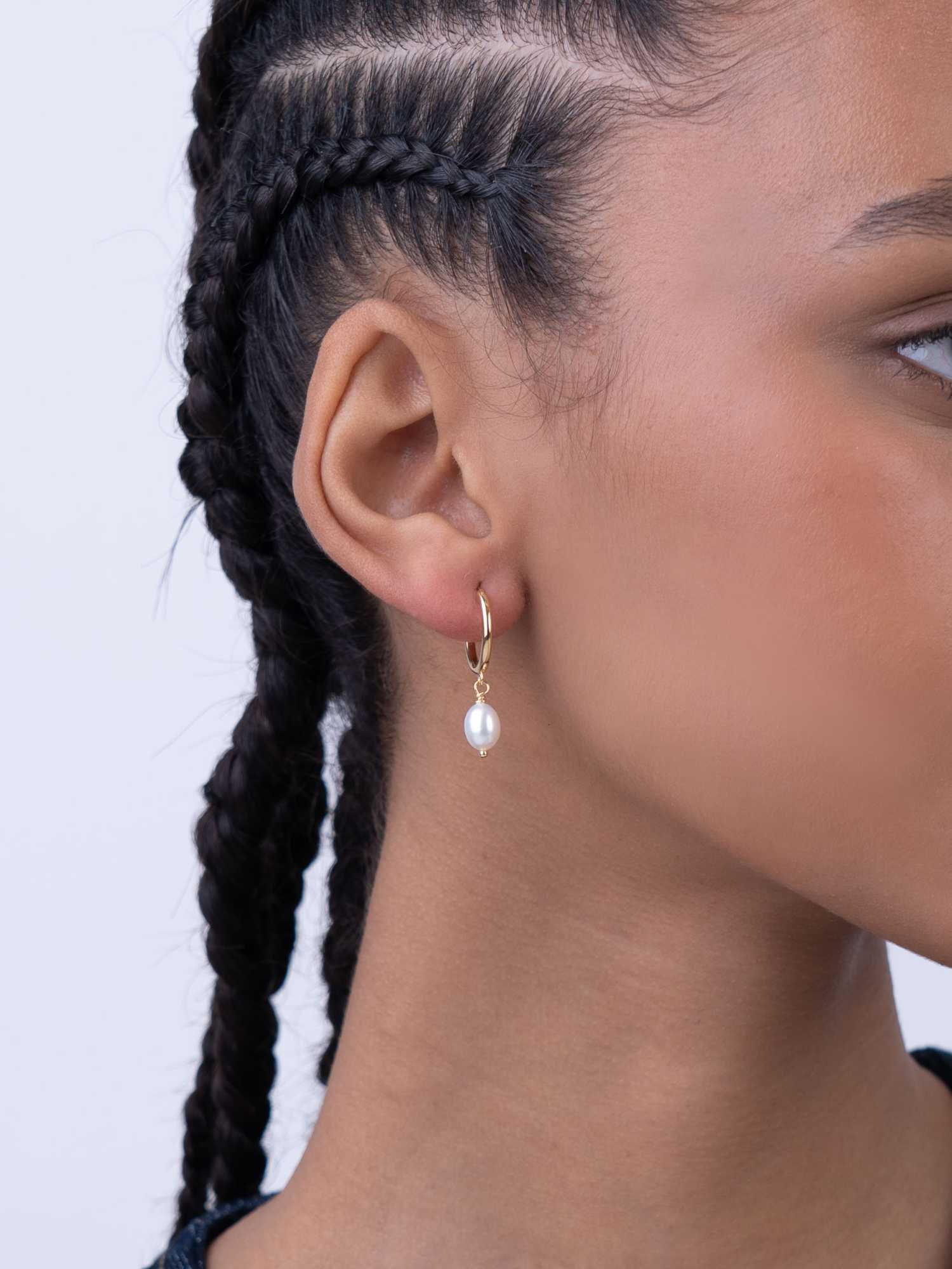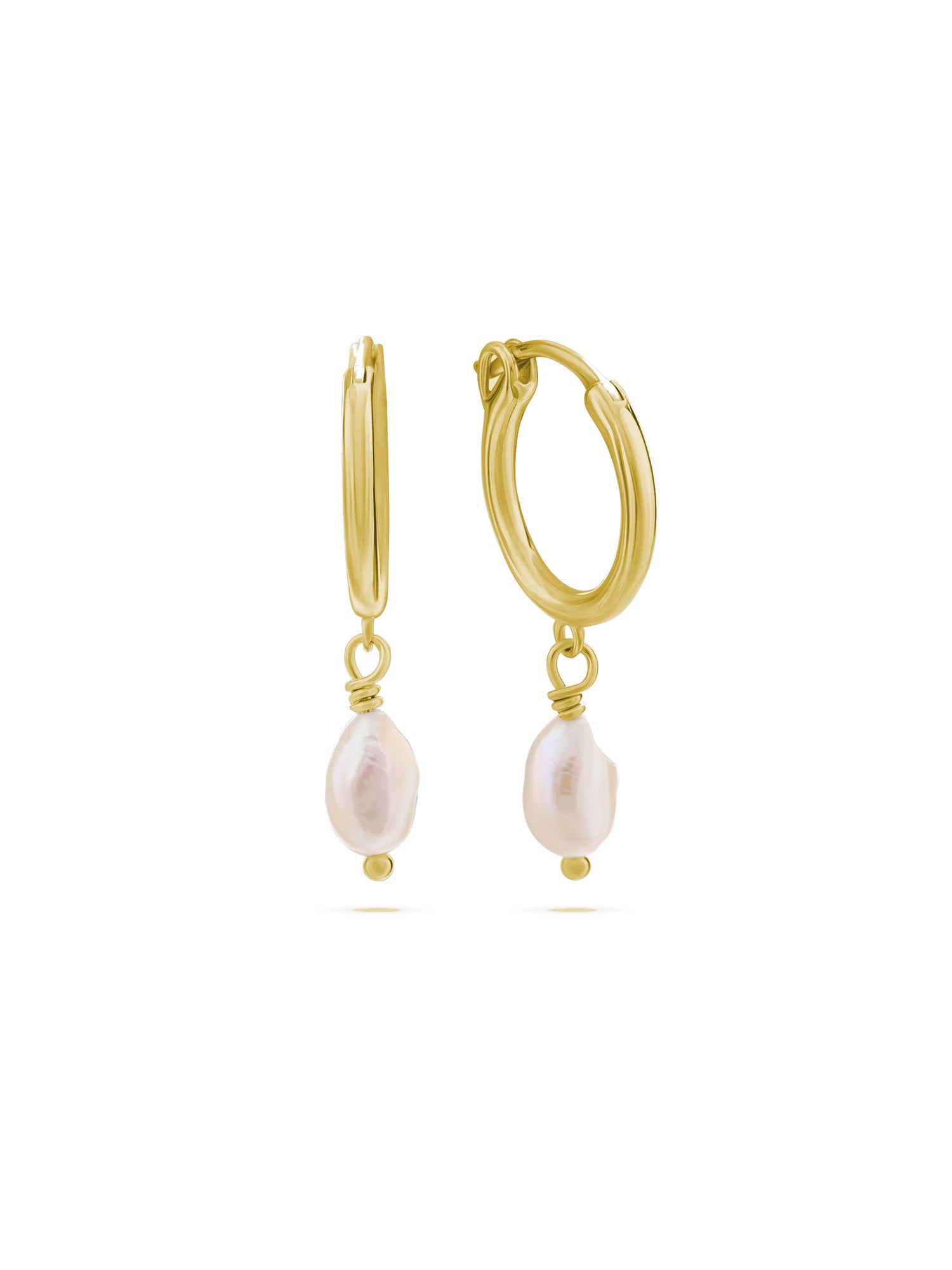 Argolas, Banhado a Ouro, Pérola cultivada, Branco, Forma não específica,, Dourado, comprimento do brinco: 2.7 cm, largura do brinco: 0.6 cm, 2.82 gramas.