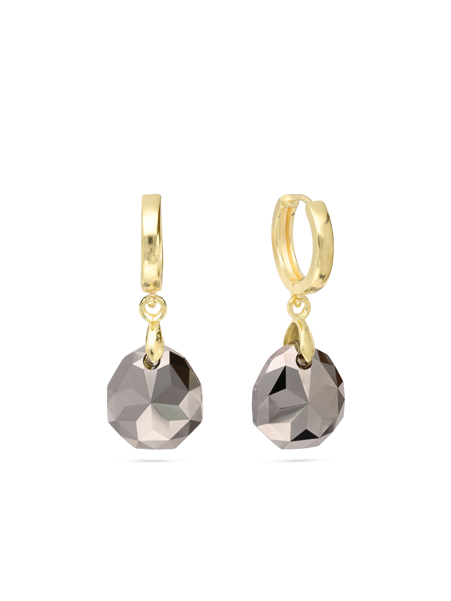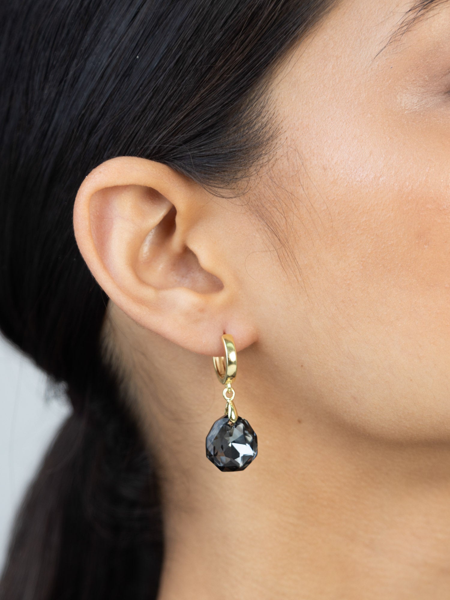 Argolas, Banhado a Ouro, Vidro cristal, Preto, Círculo, Feito à mão,, Dourado, comprimento do brinco: 3.8 cm, largura do brinco: 1.4 cm, 7.10 gramas.