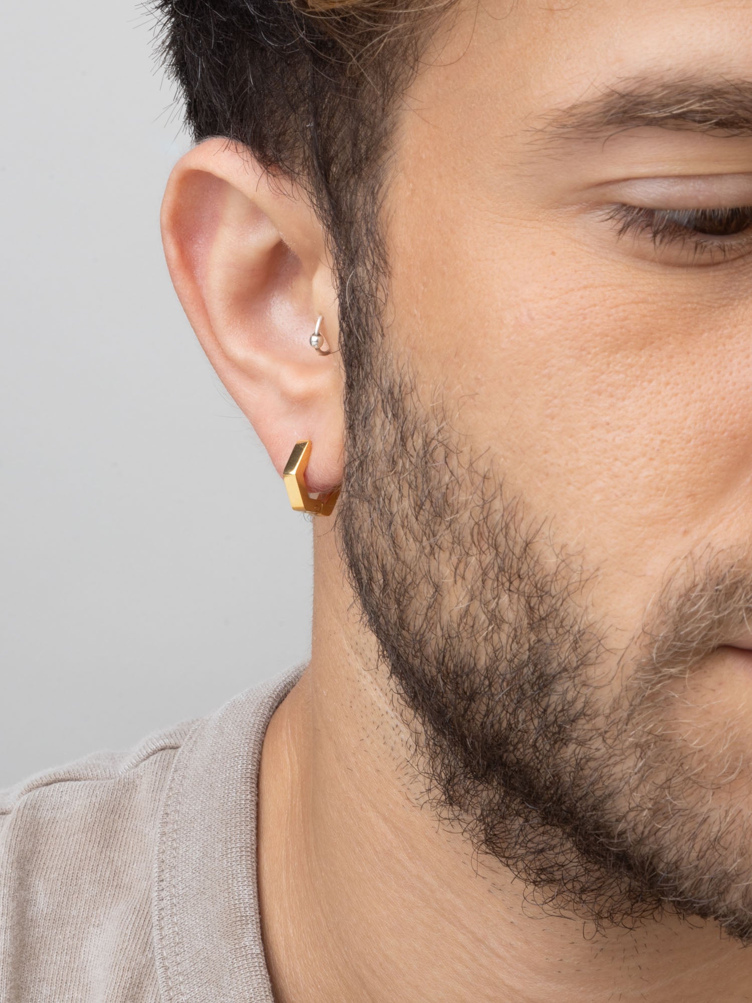 homem brinco, Aço inoxidável, Nenhuma pedra, Sem cor, Hexágono,, Dourado, comprimento do brinco: 1.3 cm, largura do brinco: 0.3 cm, 1.51 gramas.