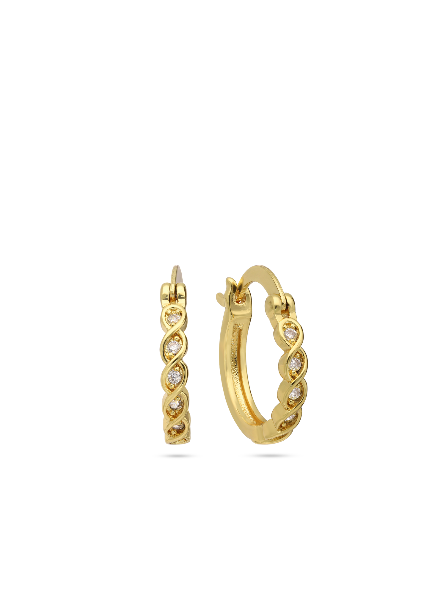 Argolas, Banhado a Ouro, Zircónia de cultivo, Claro, Círculo, Feito à mão, Dourado, diâmetro das argolas: 1.6 cm, Espessura do brinco: 0.2 cm, 1.80 gramas.