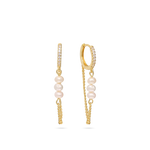 Argolas, Banhado a Ouro, Zircónia de cultivo, Pérola cultivada, Branco, Claro, Círculo, Feito à mão, Dourado, comprimento do brinco: 3.5 cm, largura do brinco: 0.3 cm, 5.00 gramas.