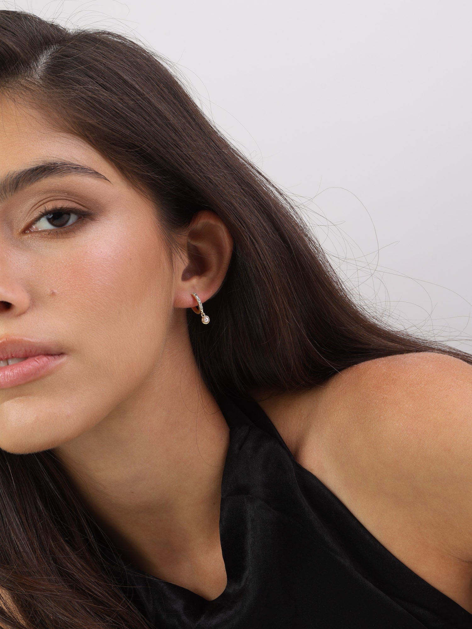 Argolas, Banhado a Ouro, Zircónia de cultivo, Madrepérola de cultivo, Branco, Claro, Círculo, Feito à mão, Dourado, comprimento do brinco: 1.7 cm, largura do brinco: 0.4 cm, 1.41 gramas.