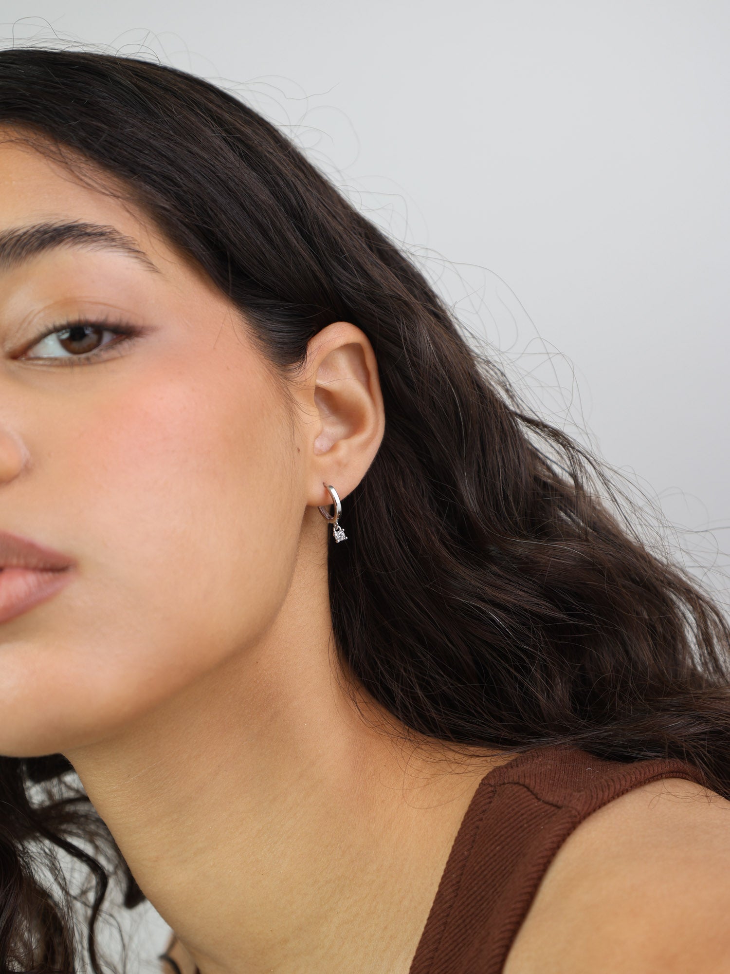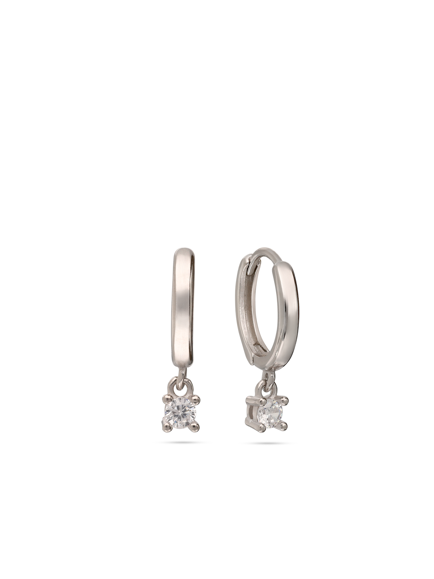 Argolas, Prata de lei 925, Zircónia de cultivo, Claro, Círculo, Feito à mão, Prateado, largura do brinco: 0.3 cm, comprimento do brinco: 1.9 cm, 1.90 gramas.
