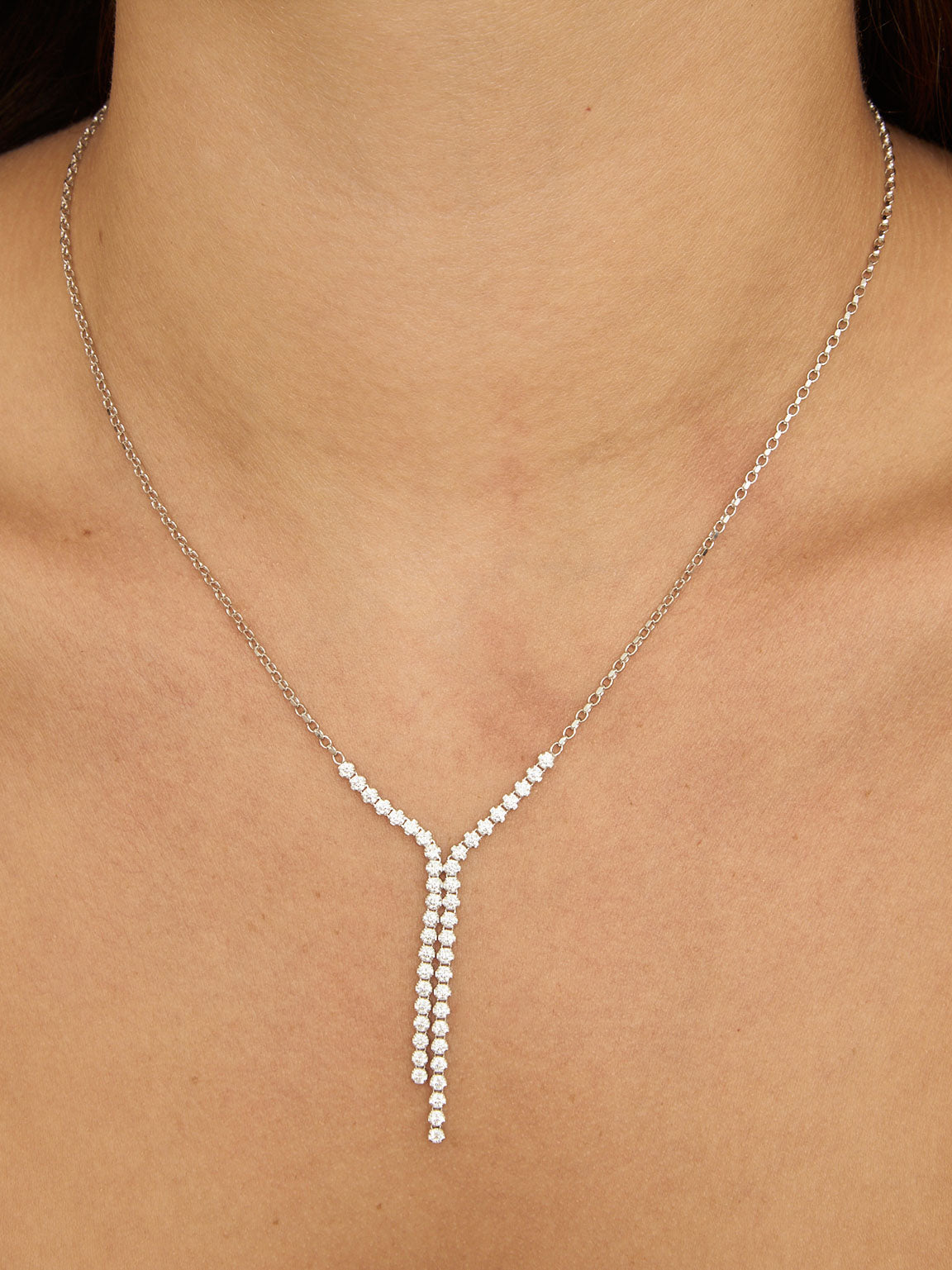 Adicione um toque de sofisticação e brilho ao seu estilo com o Colar Comprido em Prata de Lei 925. Feita à mão, esta peça apresenta um conjunto de zircónias de cultivo clara, criando um visual elegante e contemporâneo. Perfeita para quem busca um acessório versátil, esta corrente de gravata é ideal para ocasiões formais ou para adicionar um toque de glamour ao seu dia a dia.
