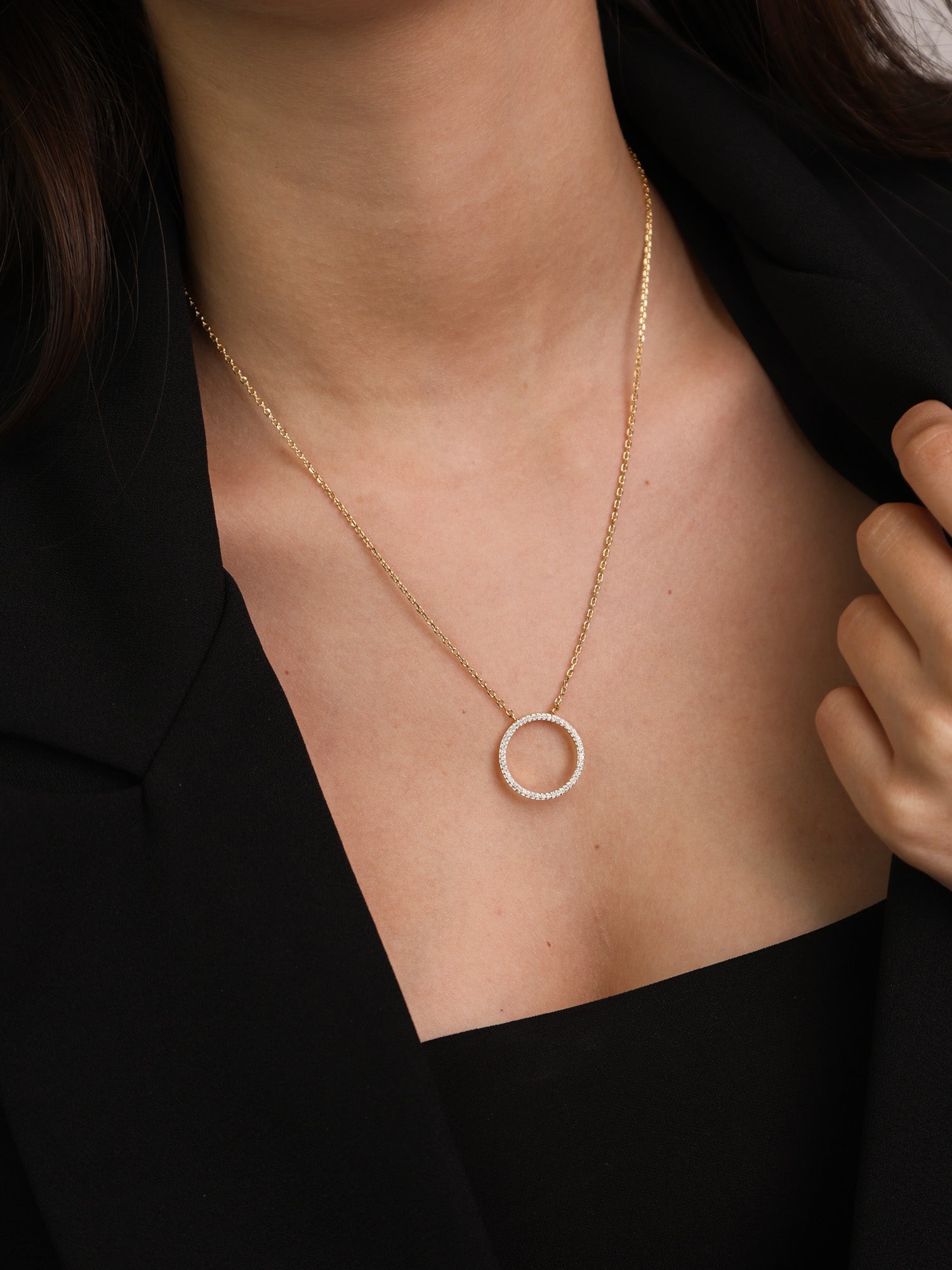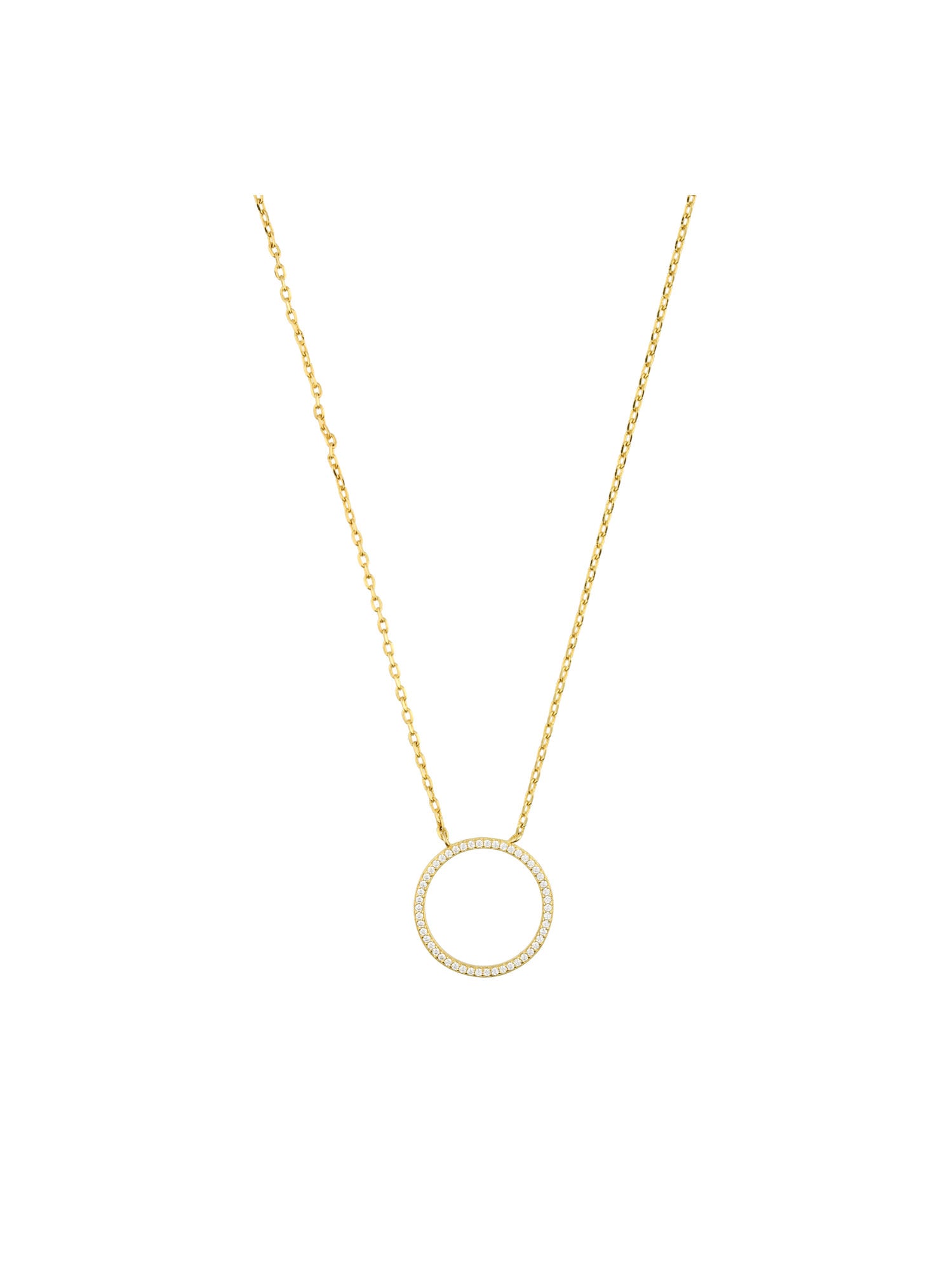 Fio com pendente, Banhado a Ouro, Zircónia de cultivo, Claro, Círculo, Feito à mão,, Dourado, comprimento do pendente: 2.0 cm, 2.60 gramas.