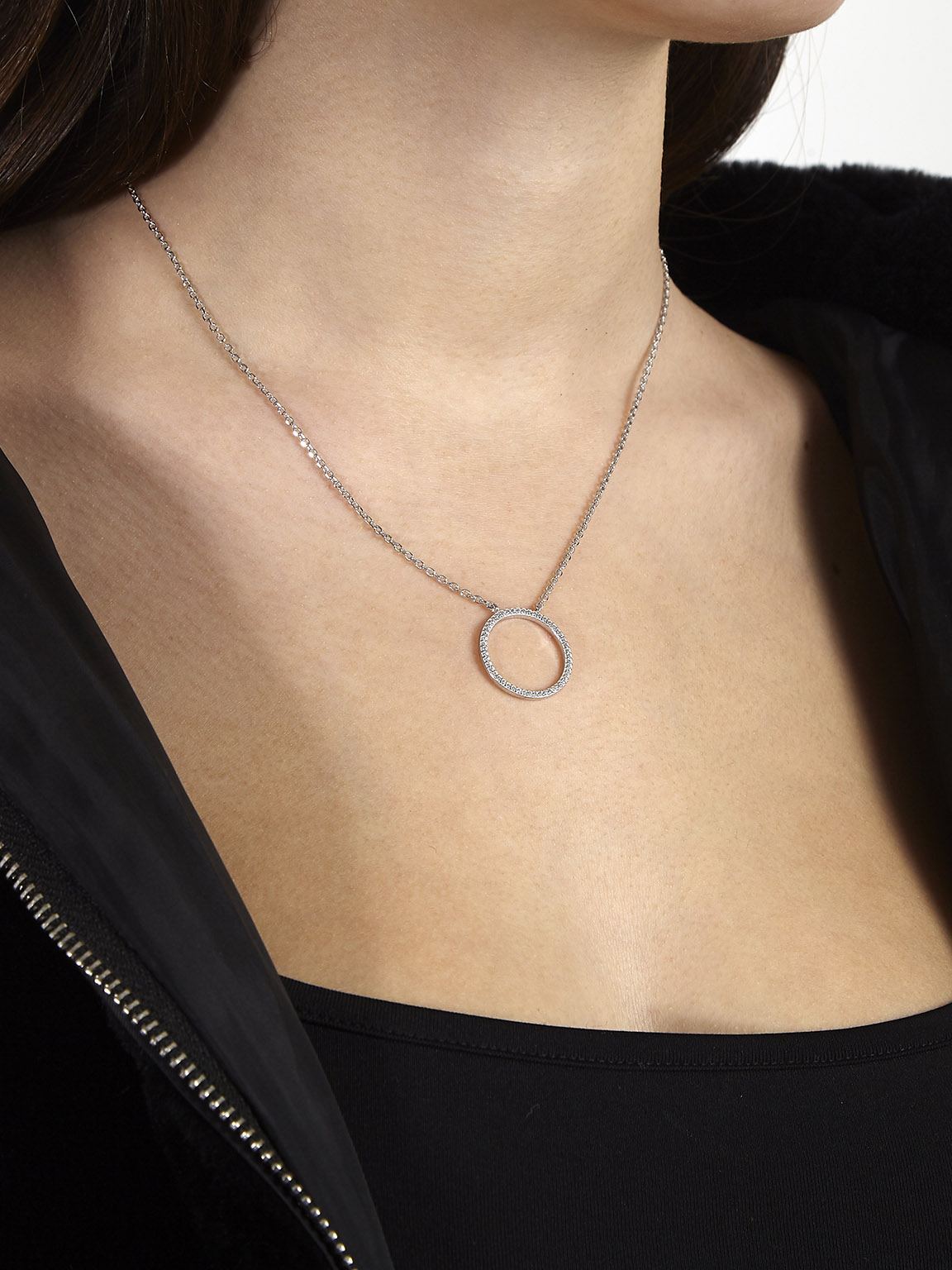 Fio com pendente círculo em prata 925 com zircónias