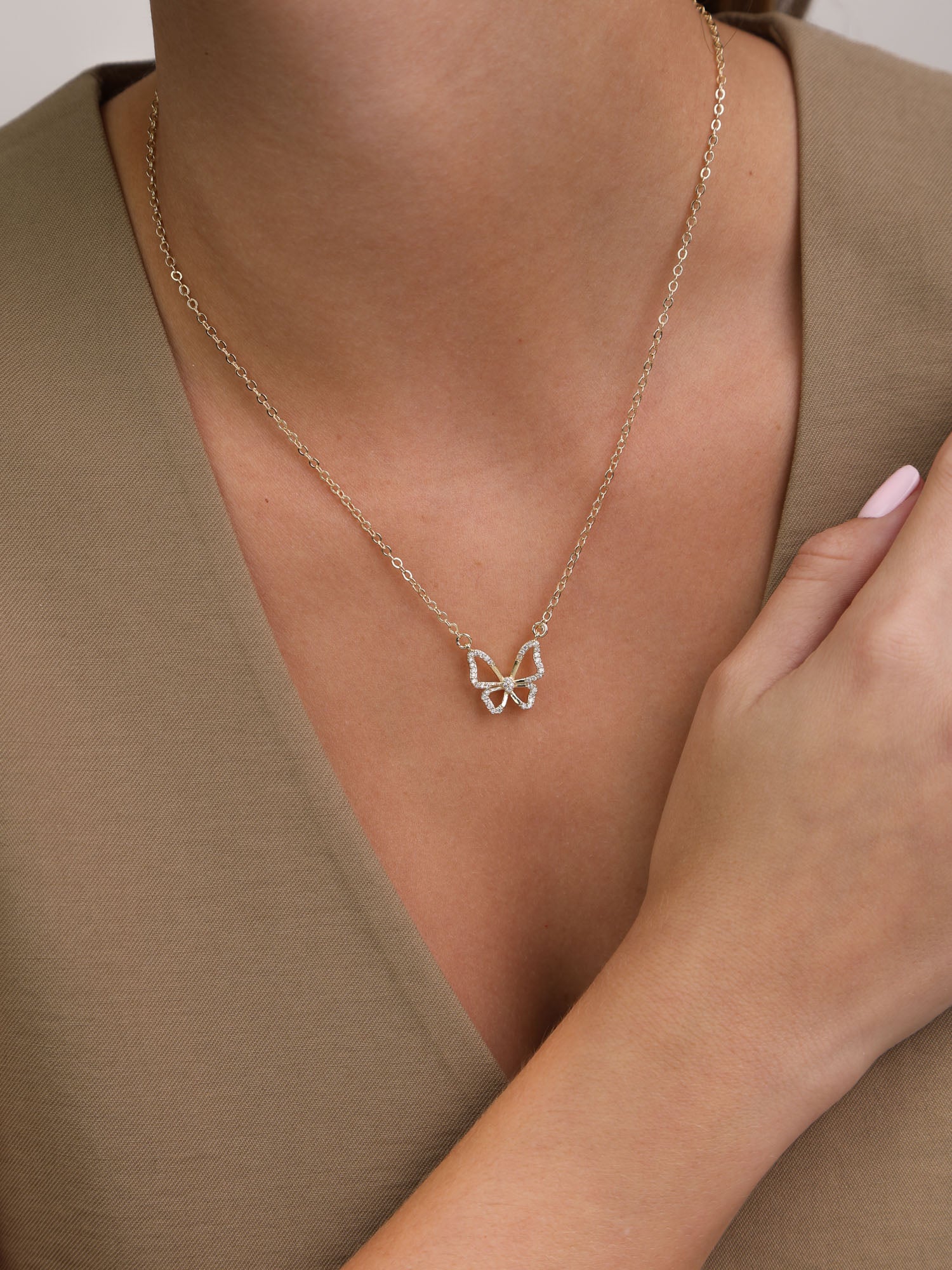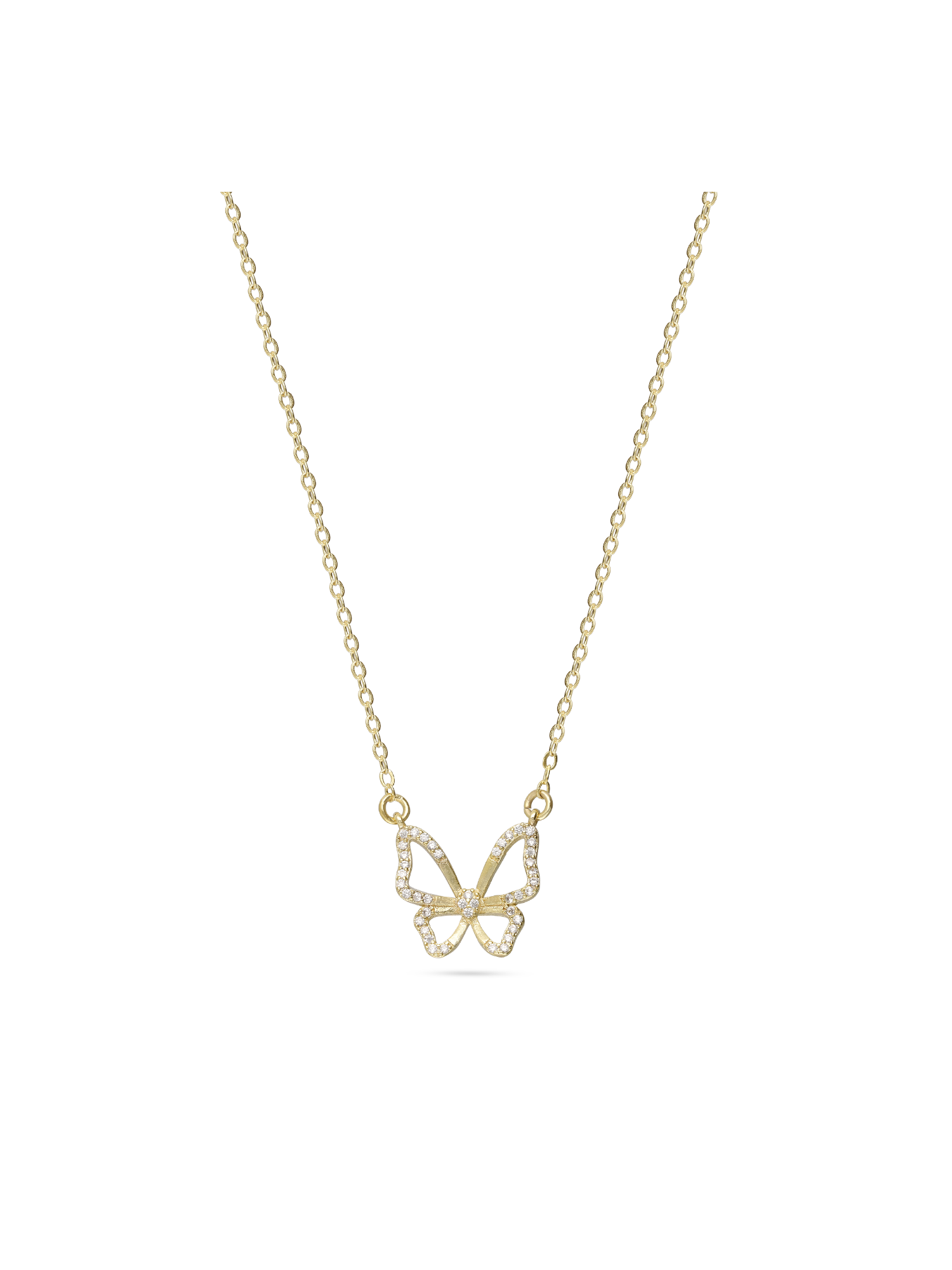 Fio com pendente, Banhado a Ouro, Zircónia de cultivo, Claro, Animal, Feito à mão, Dourado, comprimento do pendente: 1.0 cm, 2.20 gramas.