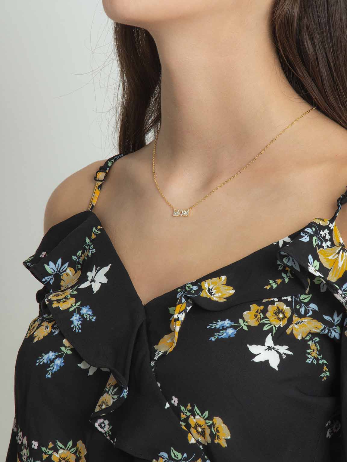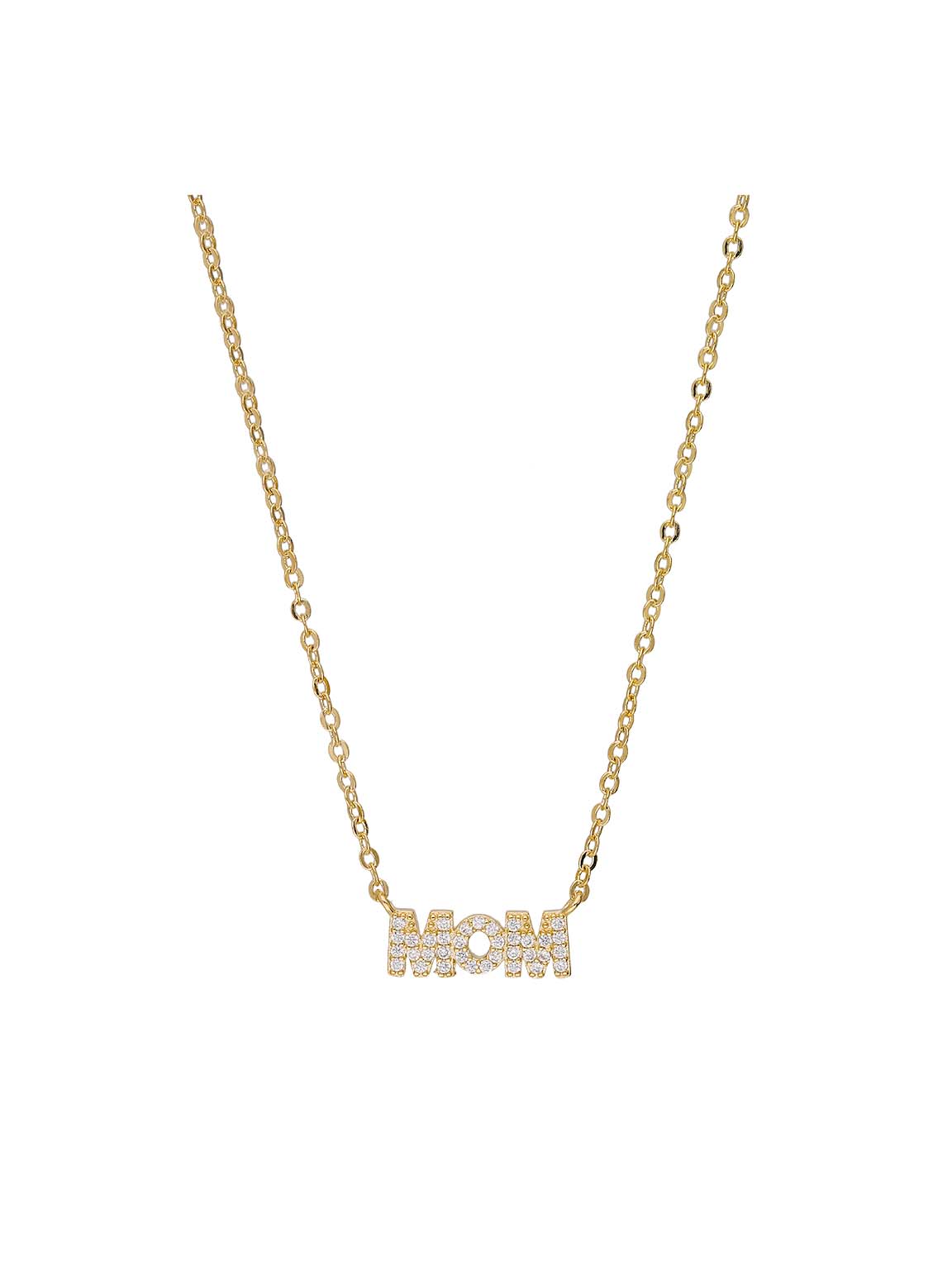 Fio com pendente "MOM" banhado a ouro com zircónias