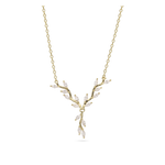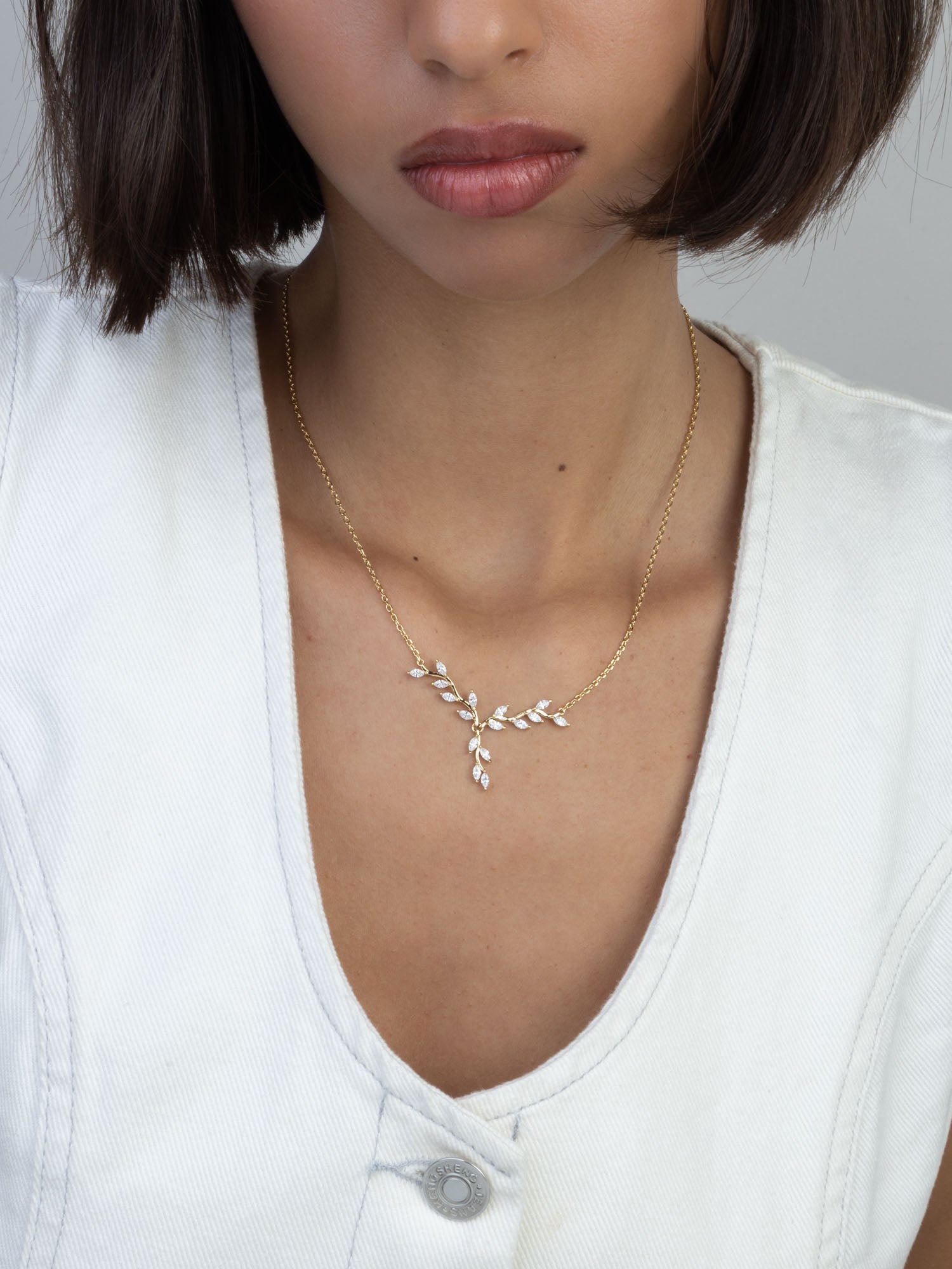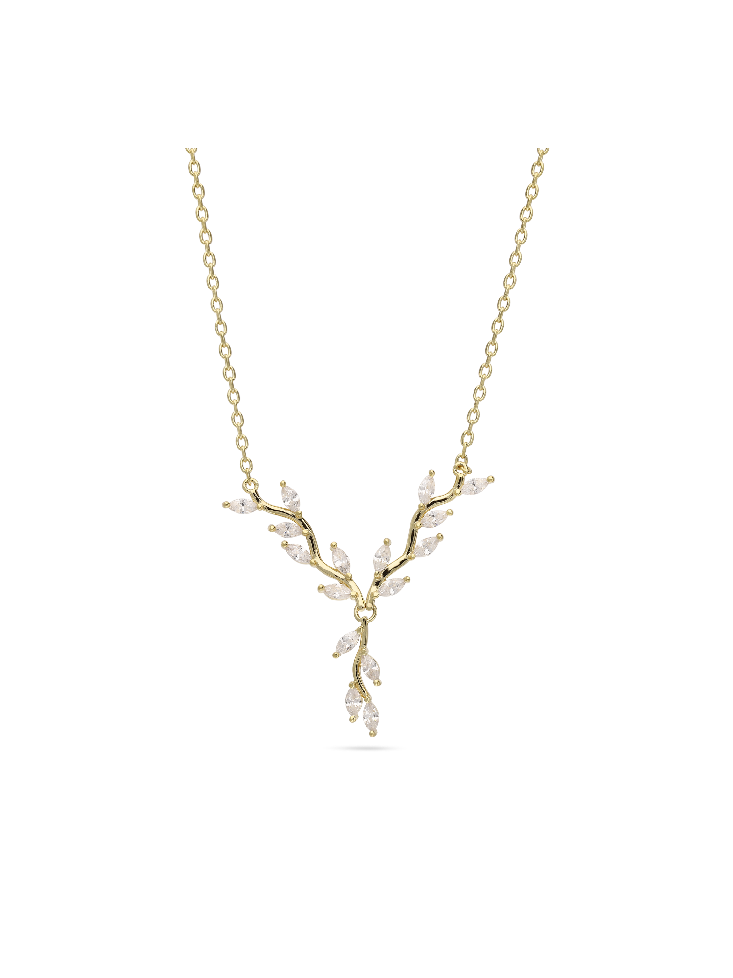 Fio com pendente, Banhado a Ouro, Zircónia de cultivo, Claro, Folha, Feito à mão,, Dourado, comprimento do pendente: 1.7 cm, largura do pendente: 4.0 cm, 3.92 gramas.
